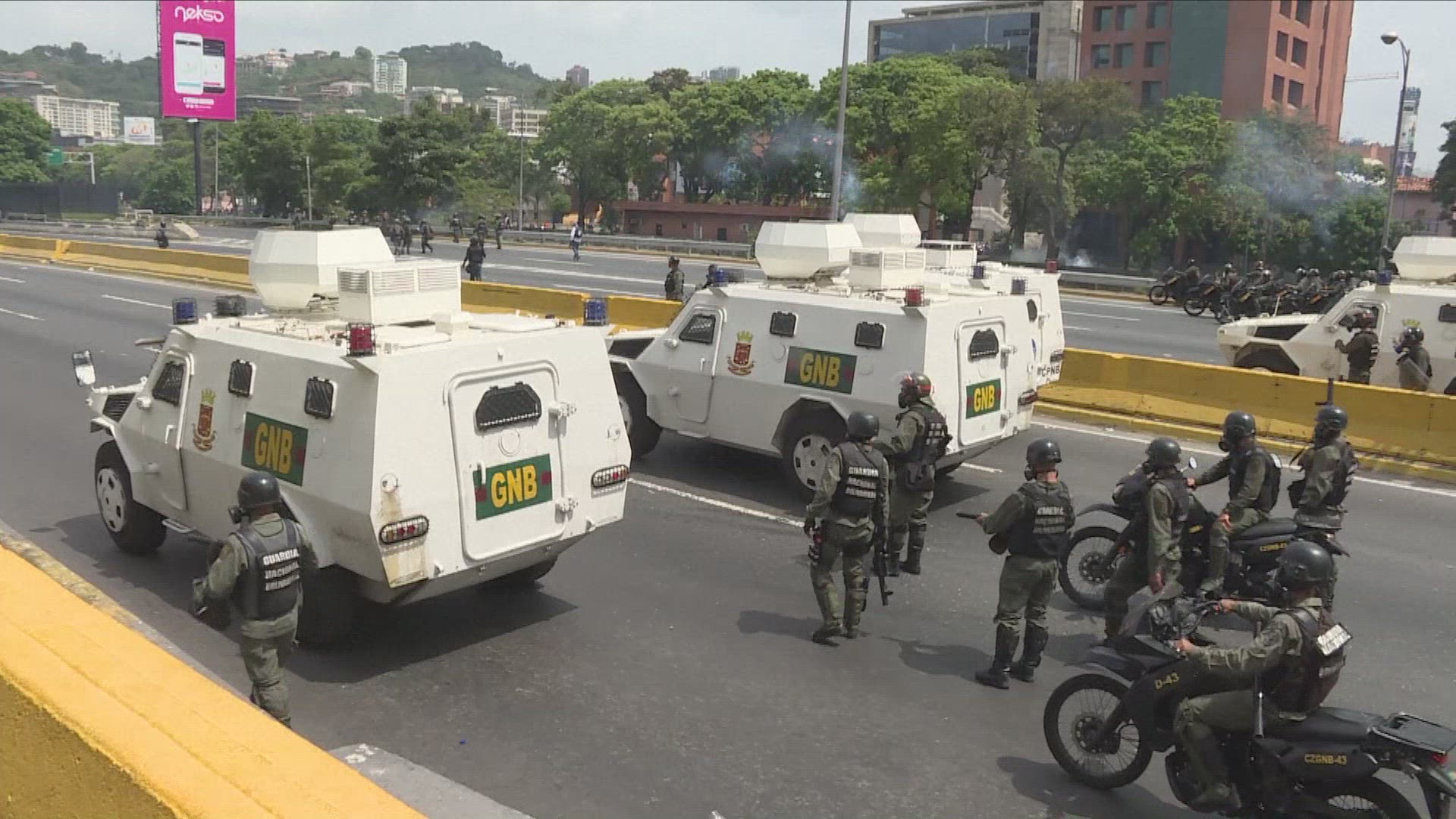 Protesters dispersed with water cannon, tear gas in Caracas The National Guard dispersed demonstrators with a water cannon and tear gas Saturday in Caracas, during a march by opposition protesters against "hunger" in Venezuela. IMAGES