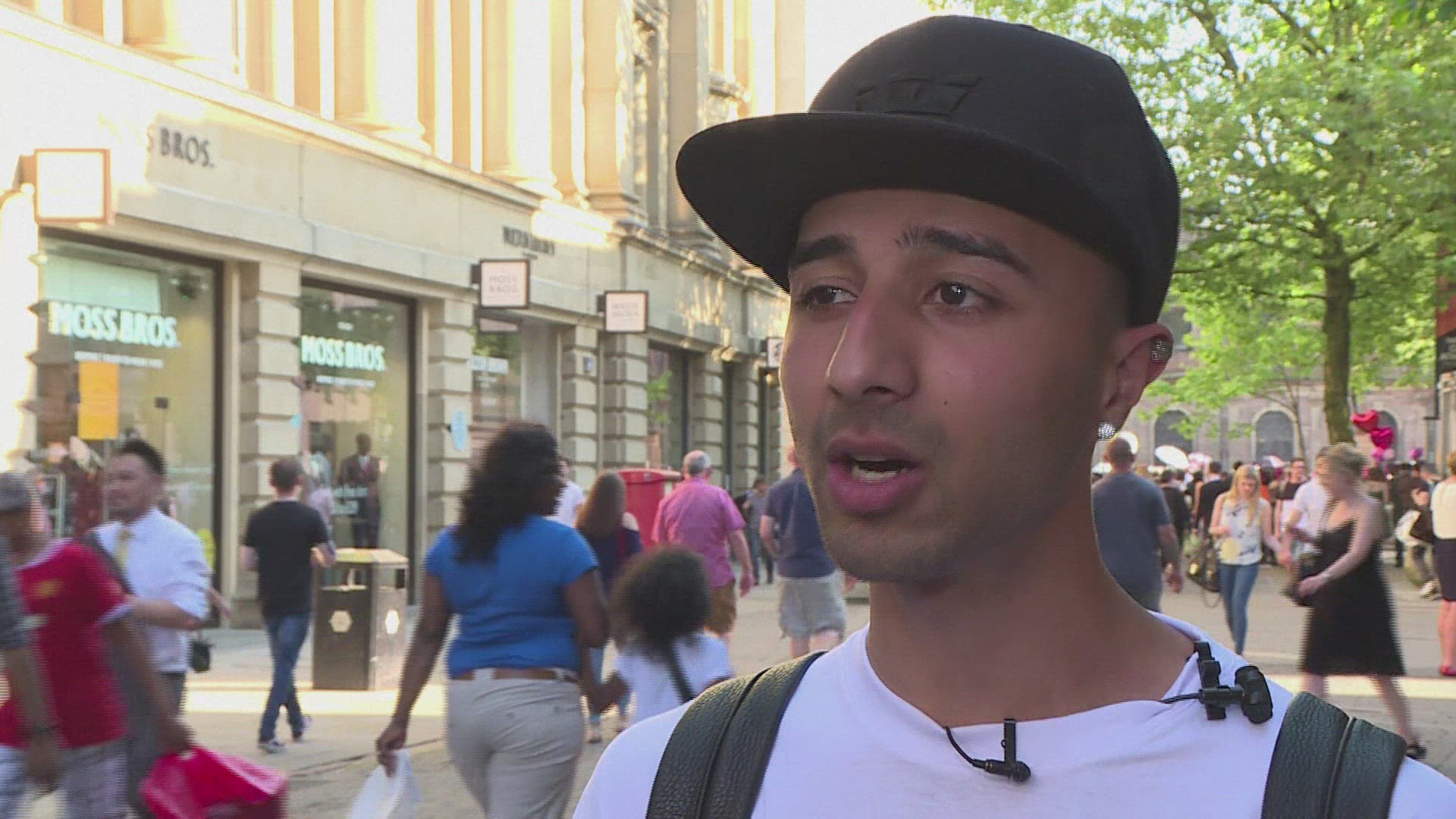 Anonymous Muslim opens arms to grieving Mancunians Young Muslim Baktash Noori stands blindfolded on a street in Manchester holding a sign that reads "I'm Muslim and I trust you. Do you trust me enough for a hug?" in reaction to Monday's blast at a pop concert, which killed 22 people.