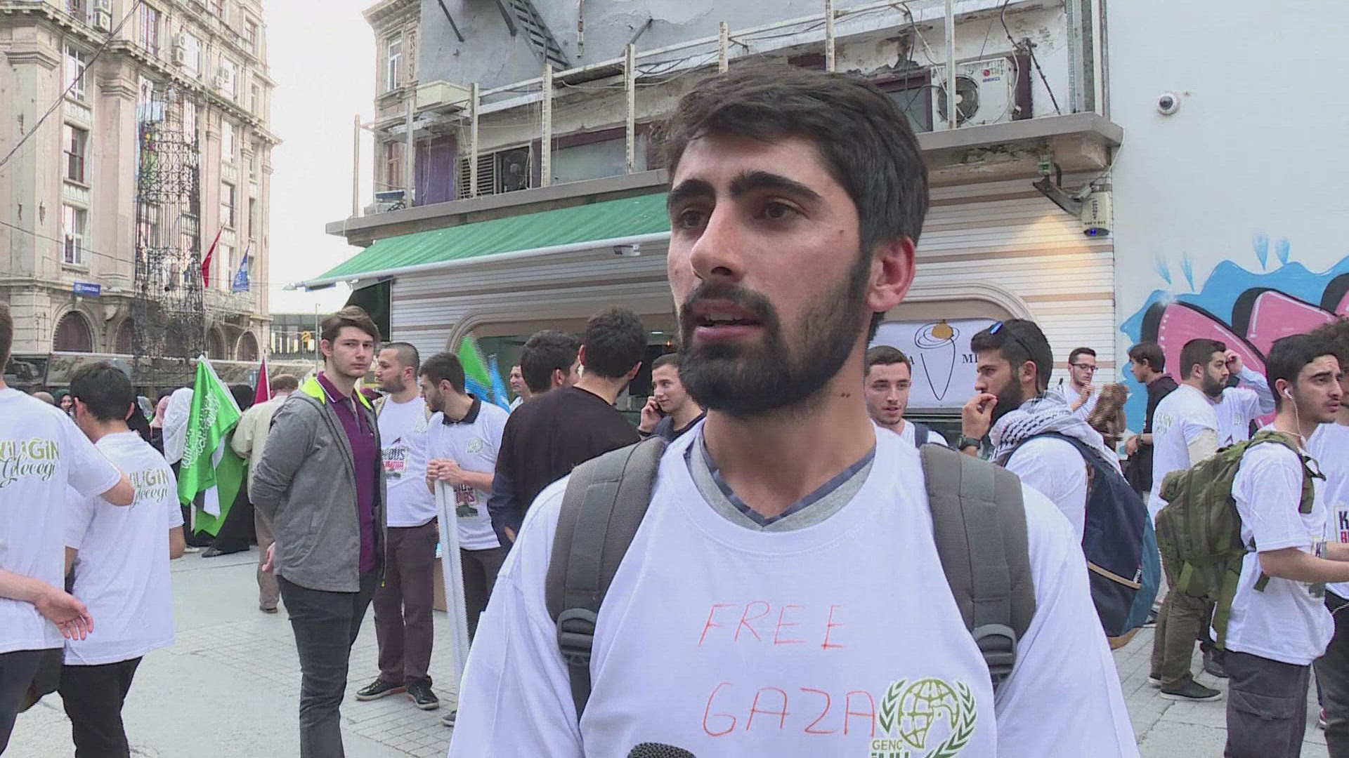 Turkey: thousands march in streets against Israel Thousands of people walked in the streets of Istanbul to mark the 7th anniversary of an Israeli attack on a Turkish flotilla, Mavi Marmara, carrying humanitarian aid to the Gaza Strip. IMAGES AND SOUNDBITES.