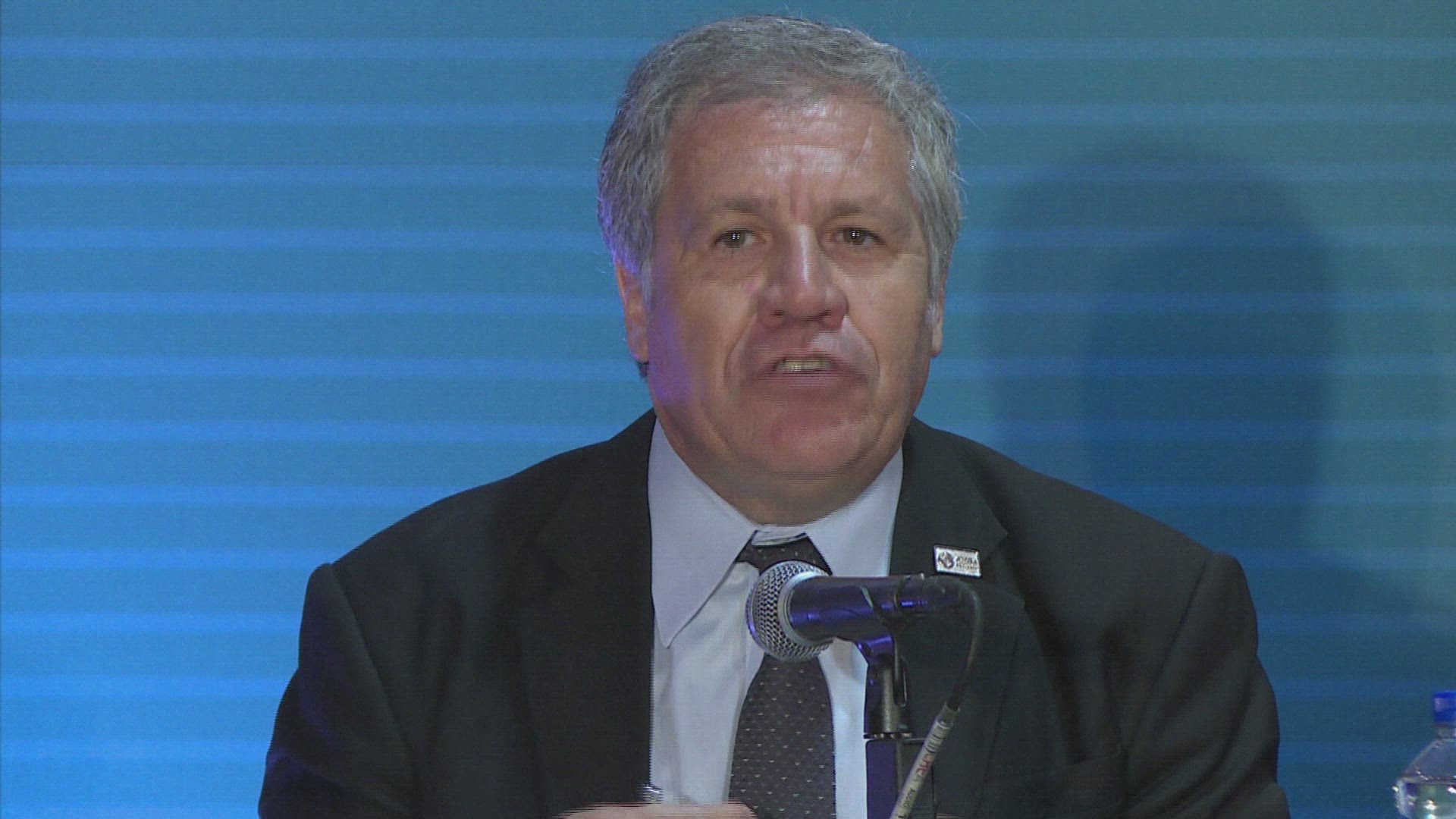 Venezuela might return to OAS if Almagro steps down: Maduro Venezuela's president Nicolas Maduro says Thursday that the only way he would think about Venezuela returning to the Organization of American States would be if OAS Secretary General Luis Almagro stepped down from his post. The South American nation began the process of formally quitting the OAS in April. SOUNDBITE
