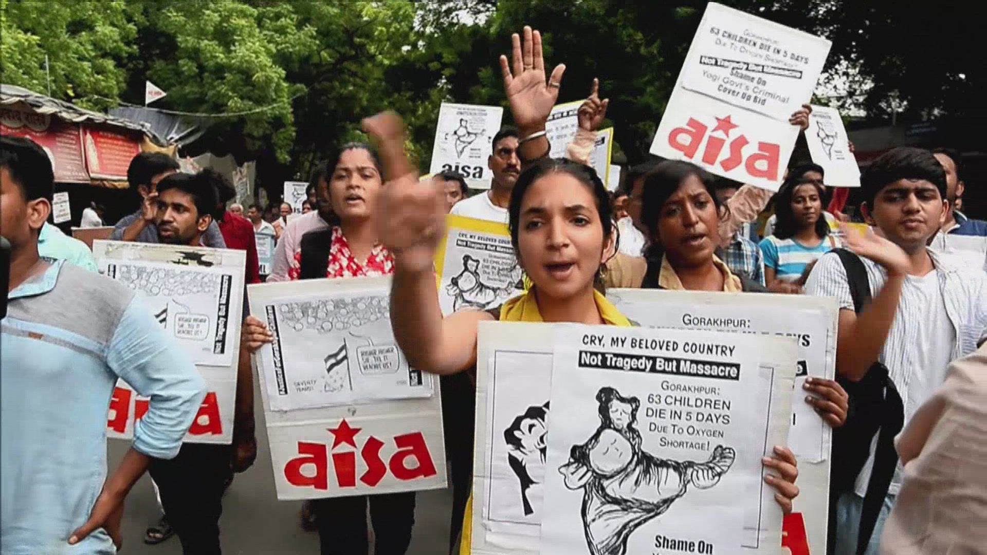 64 deaths at India hospital without oxygen (2) At least 60 children have died at a government hospital in northern India that suffered oxygen shortages, amid fears the toll could rise. Authorities said they have launched an inquiry but denied reports that a lack of oxygen had caused the deaths at the Baba Raghav Das Hospital in Gorakhpur district in Uttar Pradesh state, which is ruled by Prime Minister Narendra Modi's Bharatiya Janata Party. IMAGESCOMPLETES VID1064881_EN
