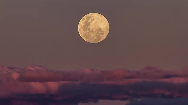 Full Moon rising behind clouds.