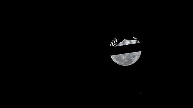Full Moon rising behind the Sydney Harbor Bridge.