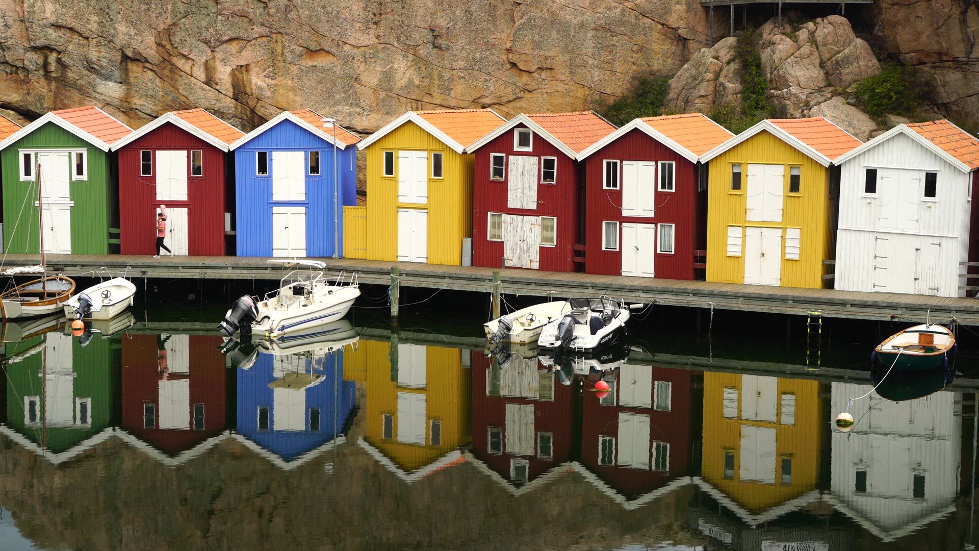 2249824 - smögen - colourful fishing huts - man with child on shoulder.mp4