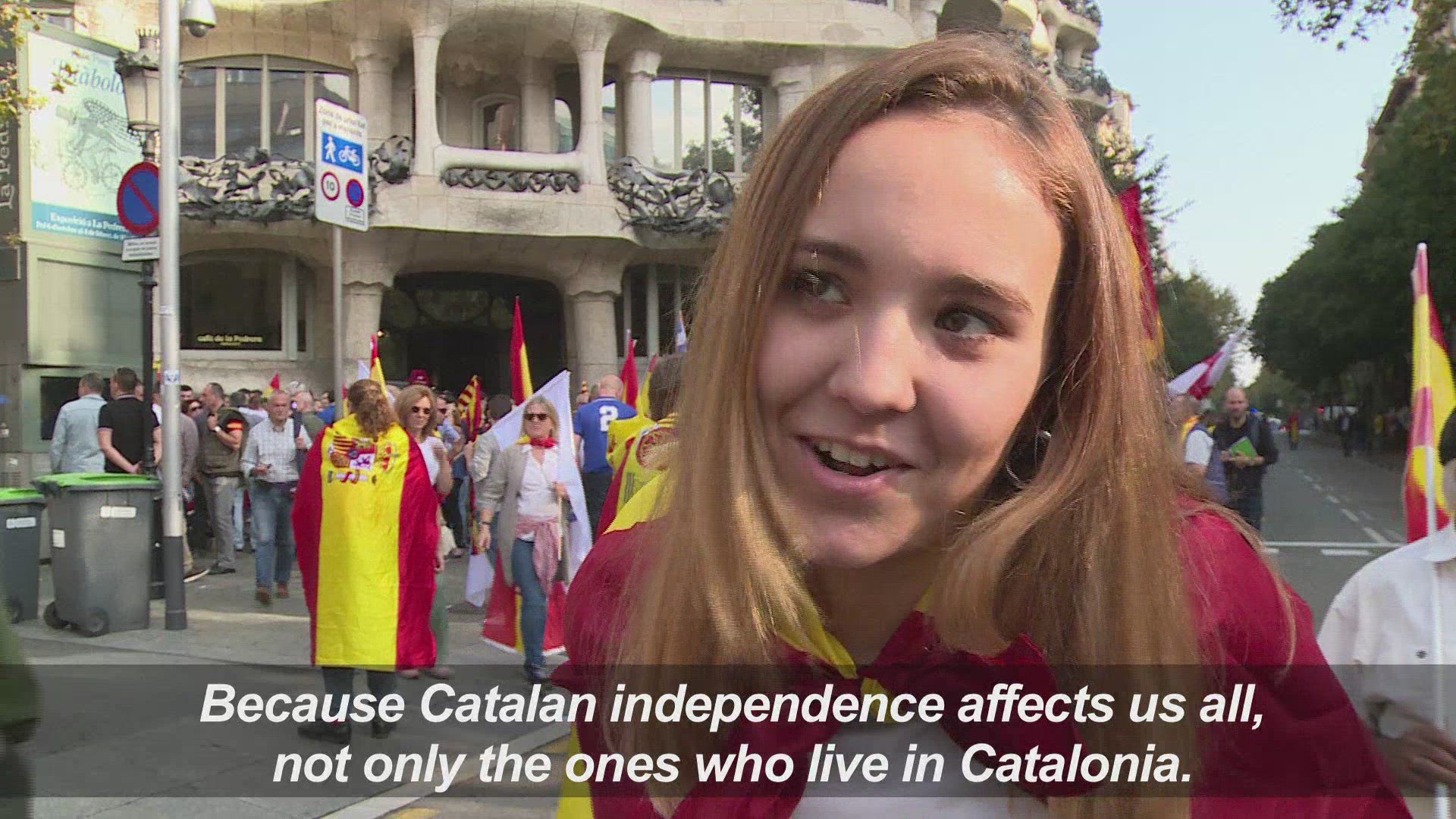 Rally in support of Spanish unity grips Barcelona Around 350,000 people attend a rally in favour of Spanish unity in Barcelona, with demonstrators saying the idea of independence is 'ridiculous'. IMAGES AND SOUNDBITES