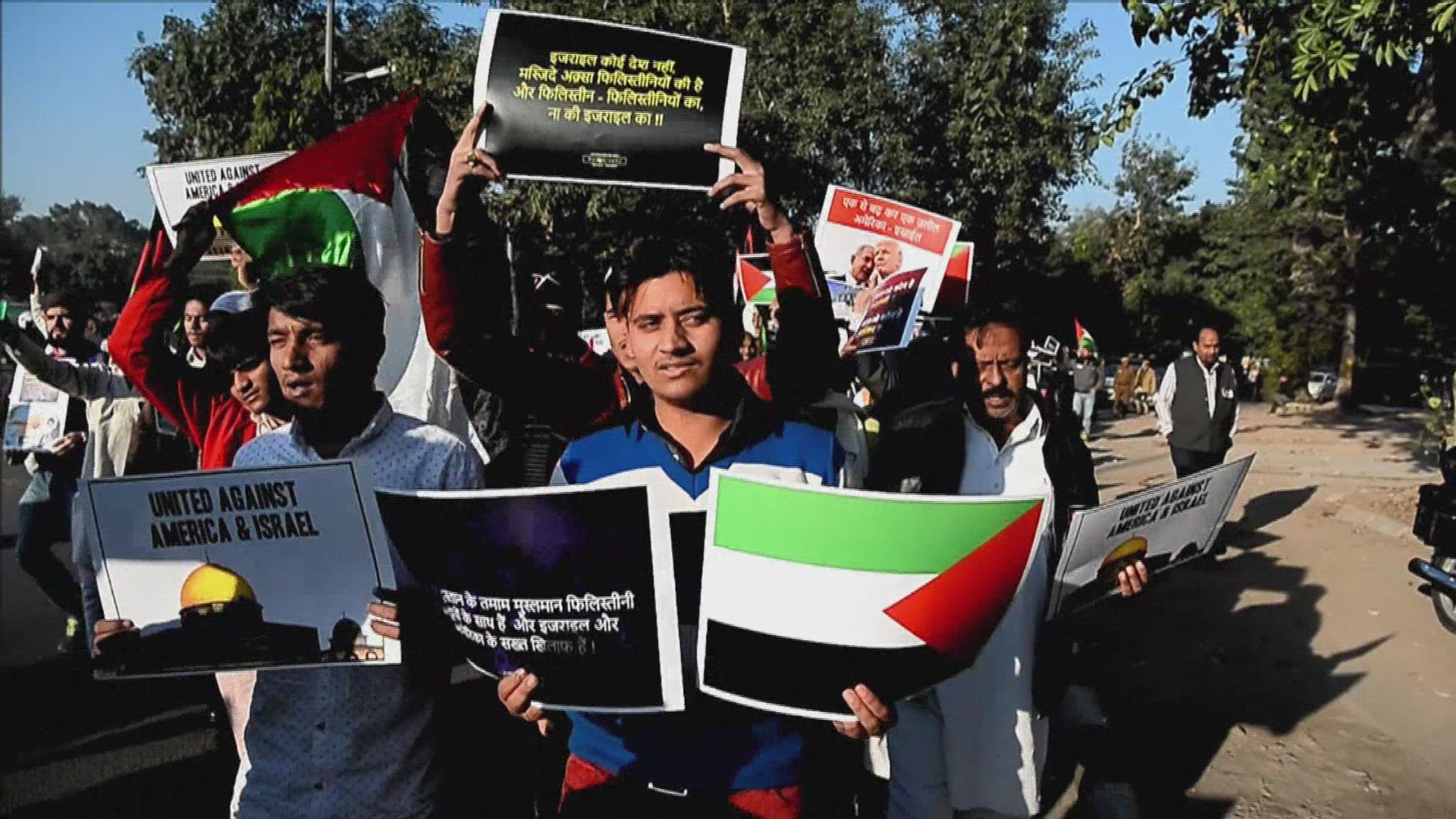 India: demonstration against Trump in New Delhi Protesters marched on Sunday in New Delhi aganst Trump's move to recognize Jerusalem as Israel's capital. IMAGES
