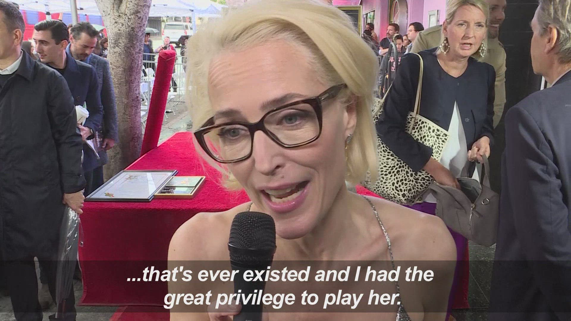 Actress Gillian Anderson gets star on Walk of Fame Actress Gillian Anderson, best known for playing Dana Scully on The X-Files, is presented with a star on the Hollywood Walk of Fame.