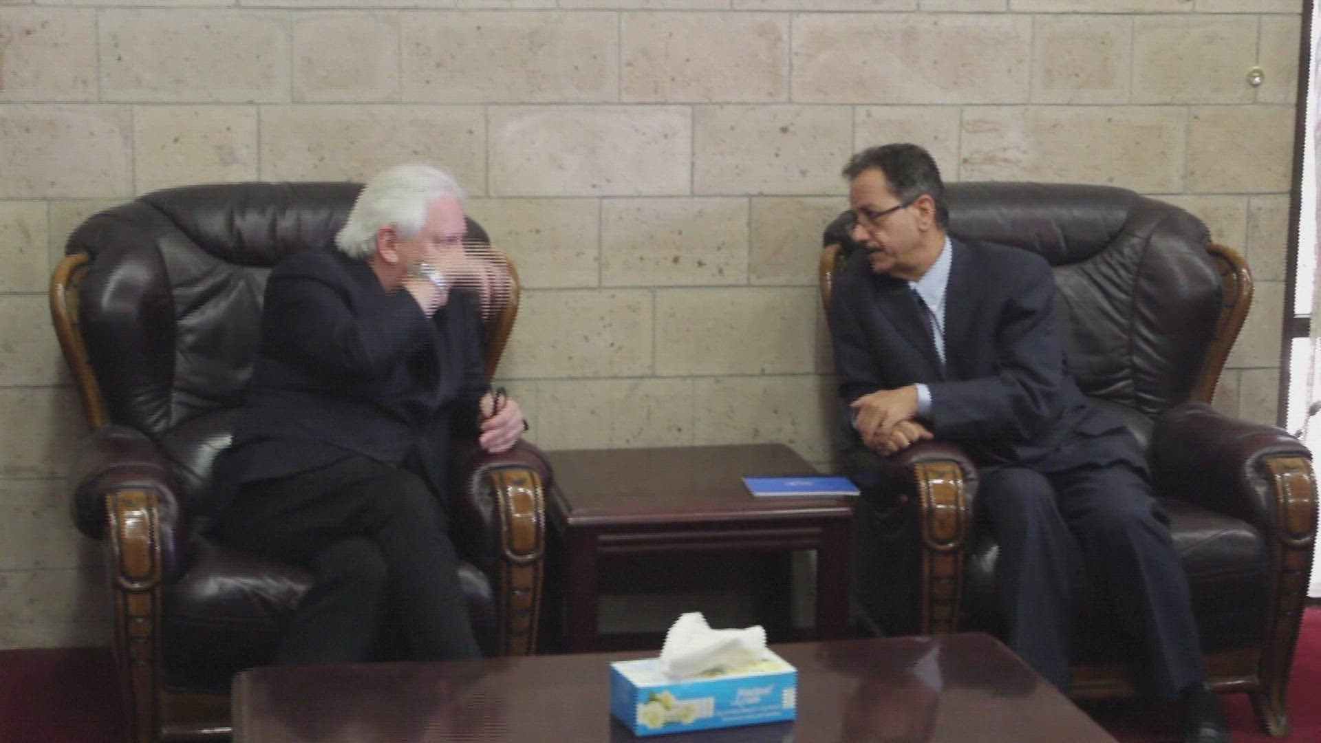 Syria regime delegation meets UN envoy in Vienna peace talks The Syria regime delegation arrives for talks with UN Syria Envoy Steffan de Mistura in Vienna on the second day of UN-backed Syria peace talks. IMAGES