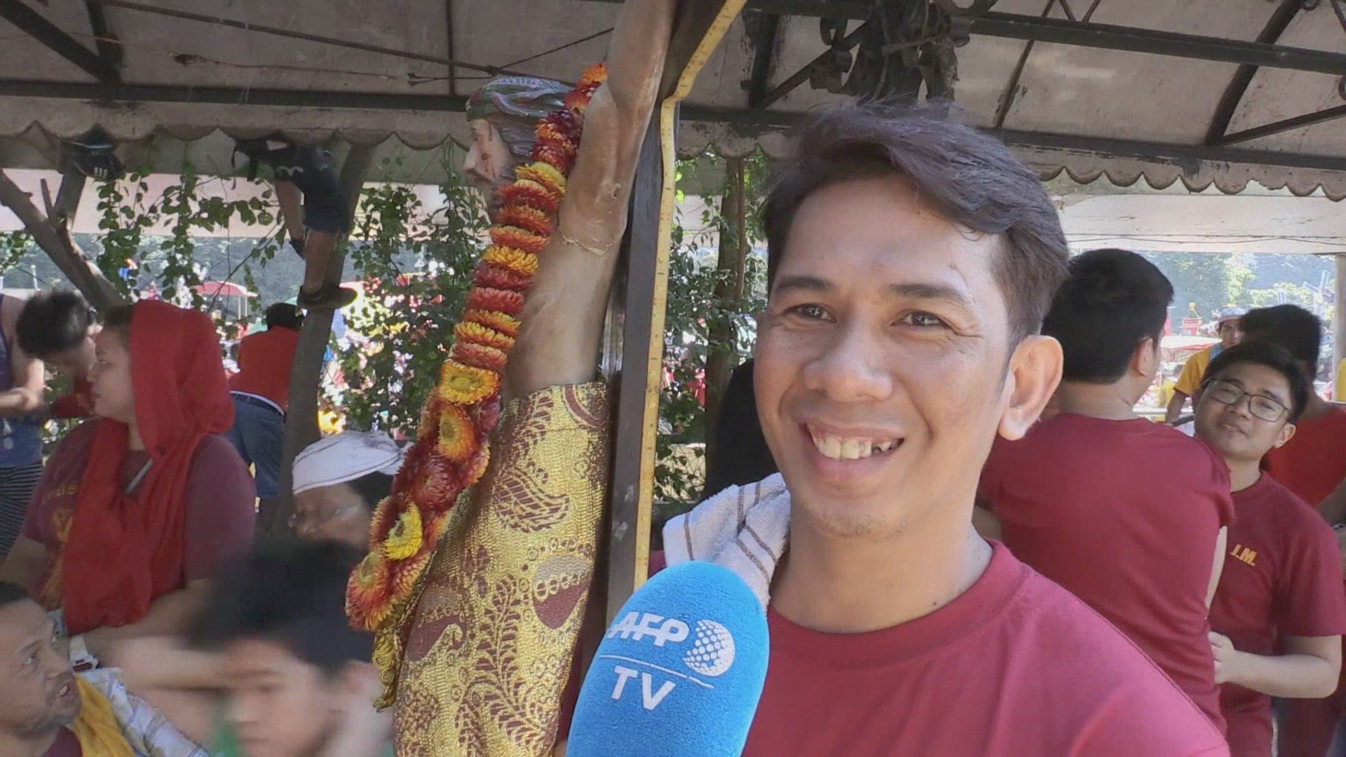 Barefoot Catholics throng icon in huge Philippine procession A sea of heaving, towel-waving humanity swarms a black statue of a cross-bearing Jesus Christ in the Philippine capital as the Catholic faithful joined one of the nation's largest religious festivals. IMAGES AND SOUNDBITES