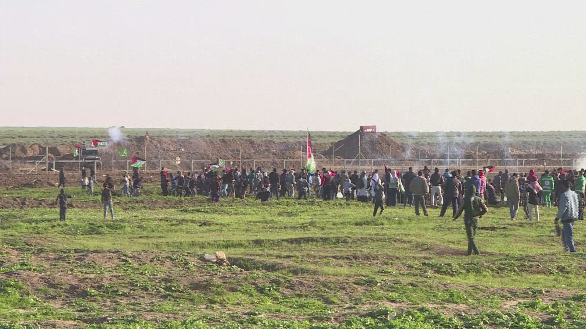 Palestinians, Israeli forces face off east of the Gaza Strip A small group of Palestinians faced off Wednesday with Israeli forces at the border fence east of the Gaza Strip. IMAGES