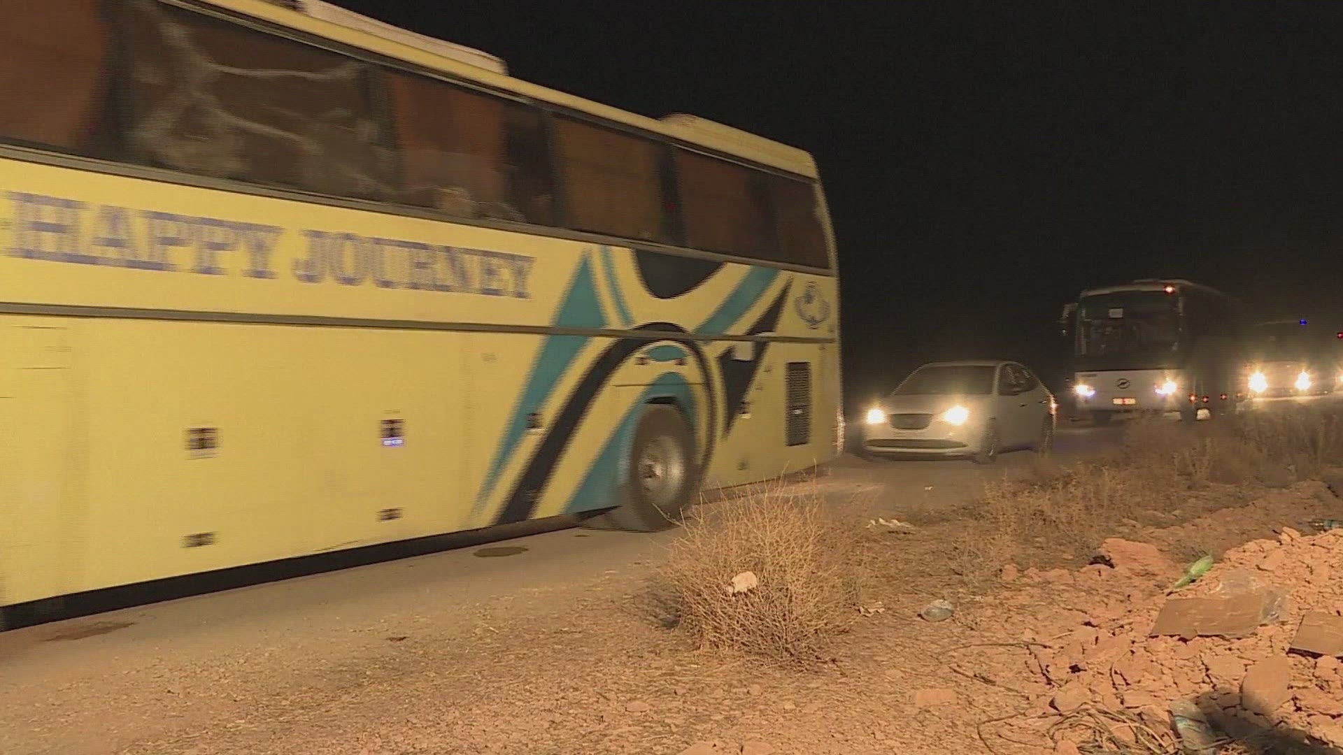 Syria rebels start evacuating last Ghouta town Rebel fighters and their families start evacuating Douma, the last rebel-held town in eastern Ghouta, arriving at the Wafidin crossing point in buses. Syrians held by the rebels in Douma are also released and arrive at the crossing point. IMAGES