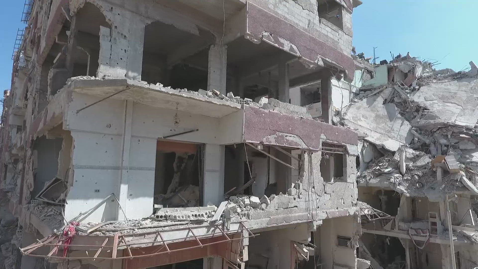 Drone footage shows destruction in Syria's Douma Drone footage shows the destruction in the town of Douma, in Syria's Eastern Ghouta. The Syrian regime drew closer to taking full control of Eastern Ghouta as state media reported that fighters began evacuating from the last rebel-held pocket of the former opposition stronghold near Damascus. IMAGES