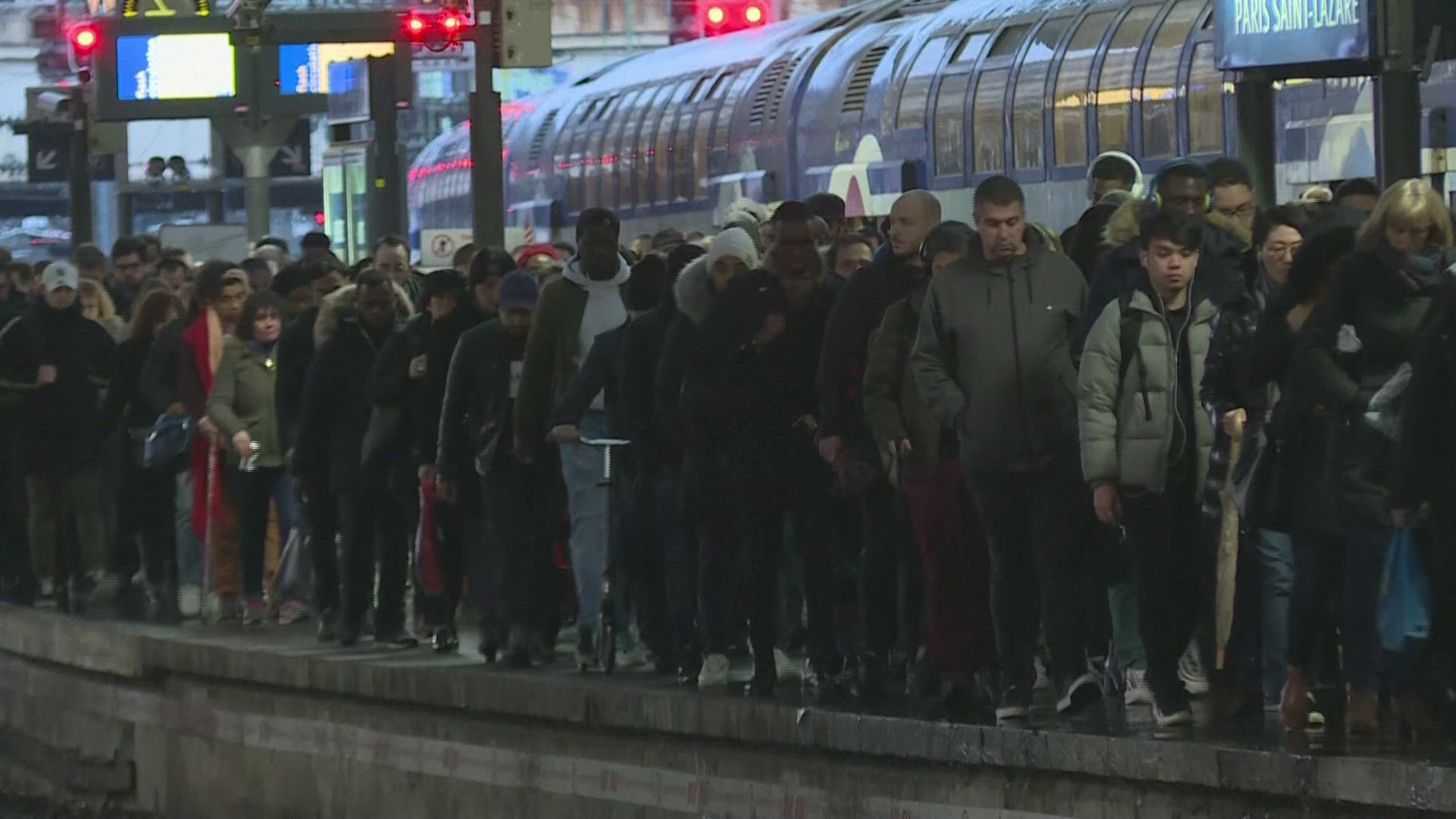 Few trains at Paris's Saint-Lazare station on day two of strikes Millions of French travellers suffer a second day of major disruption as rail workers press on with rolling strikes. IMAGES from Paris's Saint-Lazare station