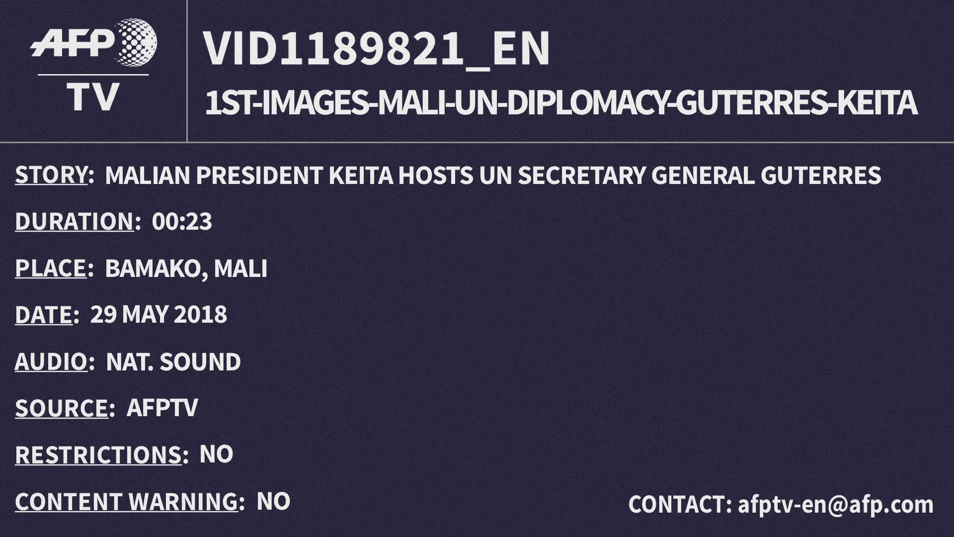 UN's Guterres in Mali for International Day of UN Peacekeepers UN Secretary General Antonio Guterres is in Bamako for the International Day of UN Peacekeepers. The UN's mission in Mali is their most dangerous operation. IMAGES AND SOUNDBITES