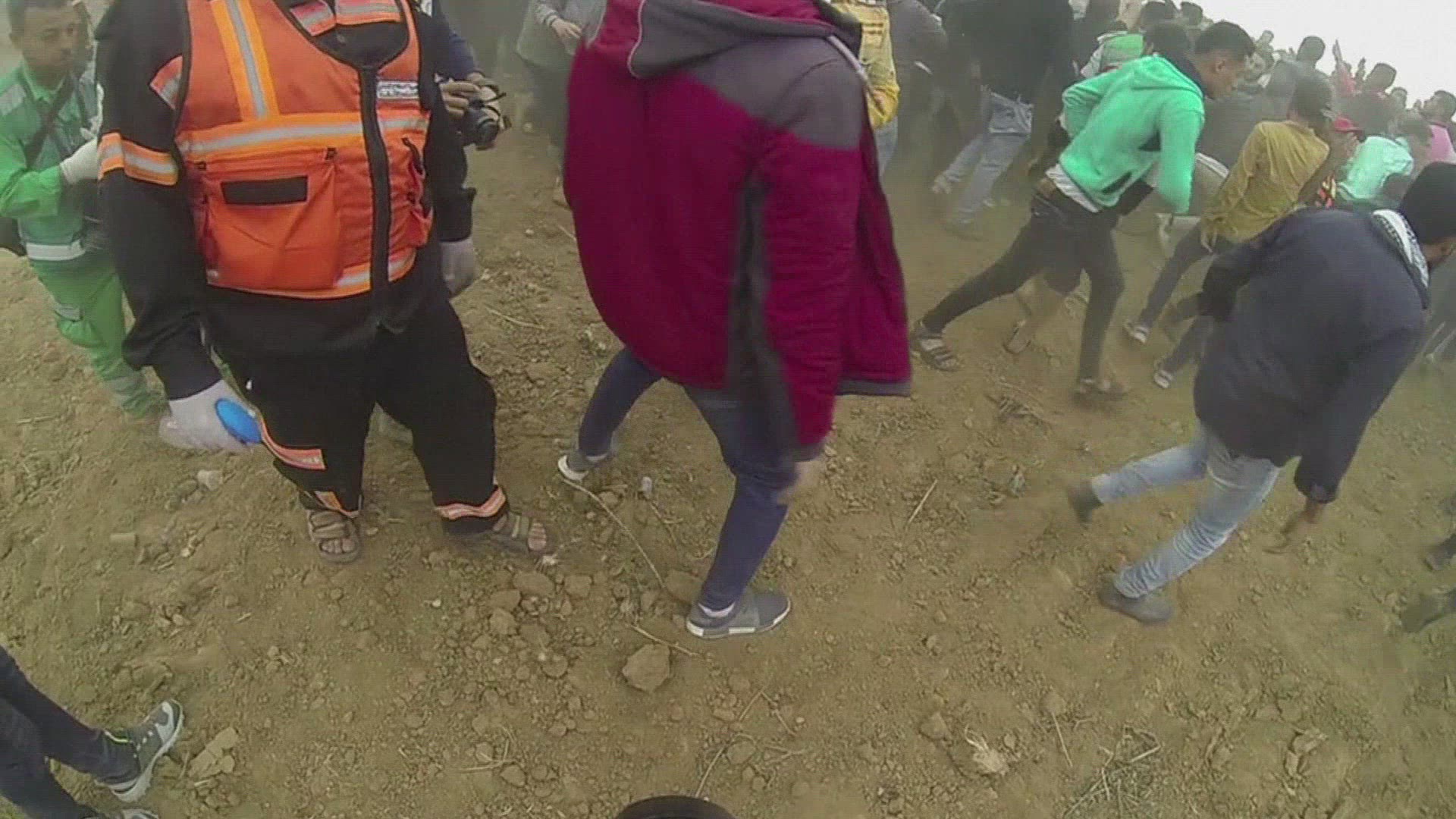 Gaza: funeral of slain Palestinian journalist The funeral of slain Palestinian journalist Ahmed Abu Hussein takes place in Jabalia, in the Gaza strip. Abu Hussein was shot two weeks ago by Israeli forces on the Gaza border and died Wednesday, according to Israeli and Palestinian sources. He is the second journalist killed in a month of unrest.