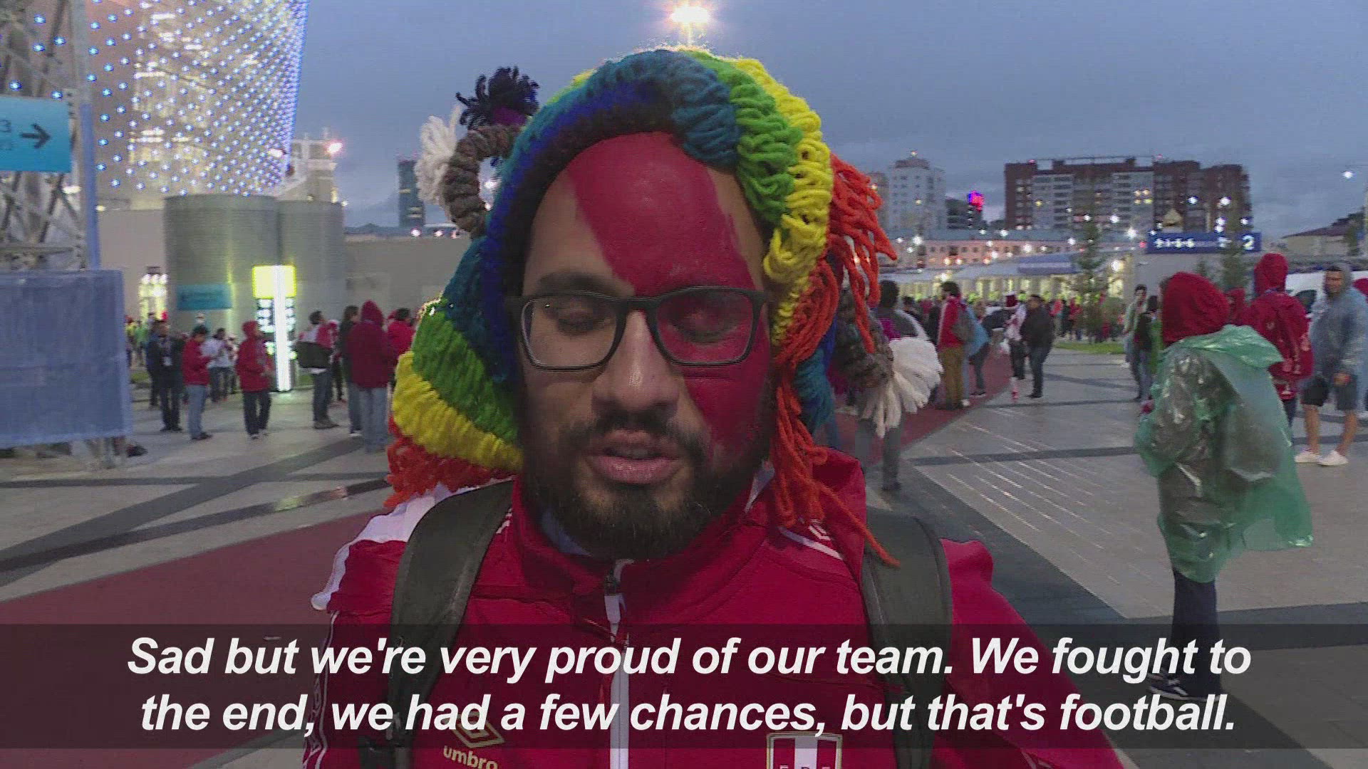 Football/WC-2018: Uruguay fans "suffered until the end" After a last minute 1-0 win against Egypt, Uruguay fans celebrate outside the stadium in Yekaterinburg.