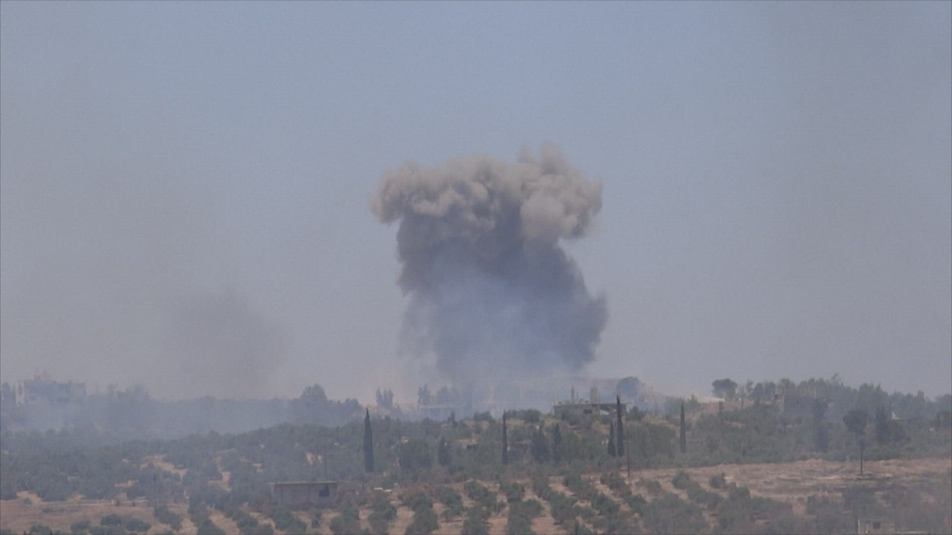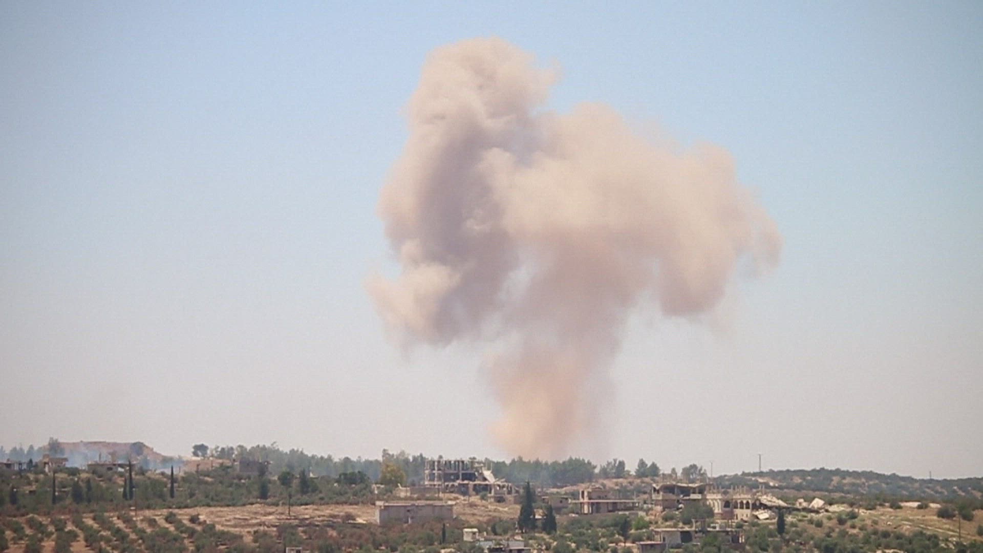Regime strikes hit rebel-held town in Daraa Smoke rises above buildings during air strikes by Syrian regime forces on the town of Busra al-Harir, east of the southern Syrian province of Daraa. IMAGES