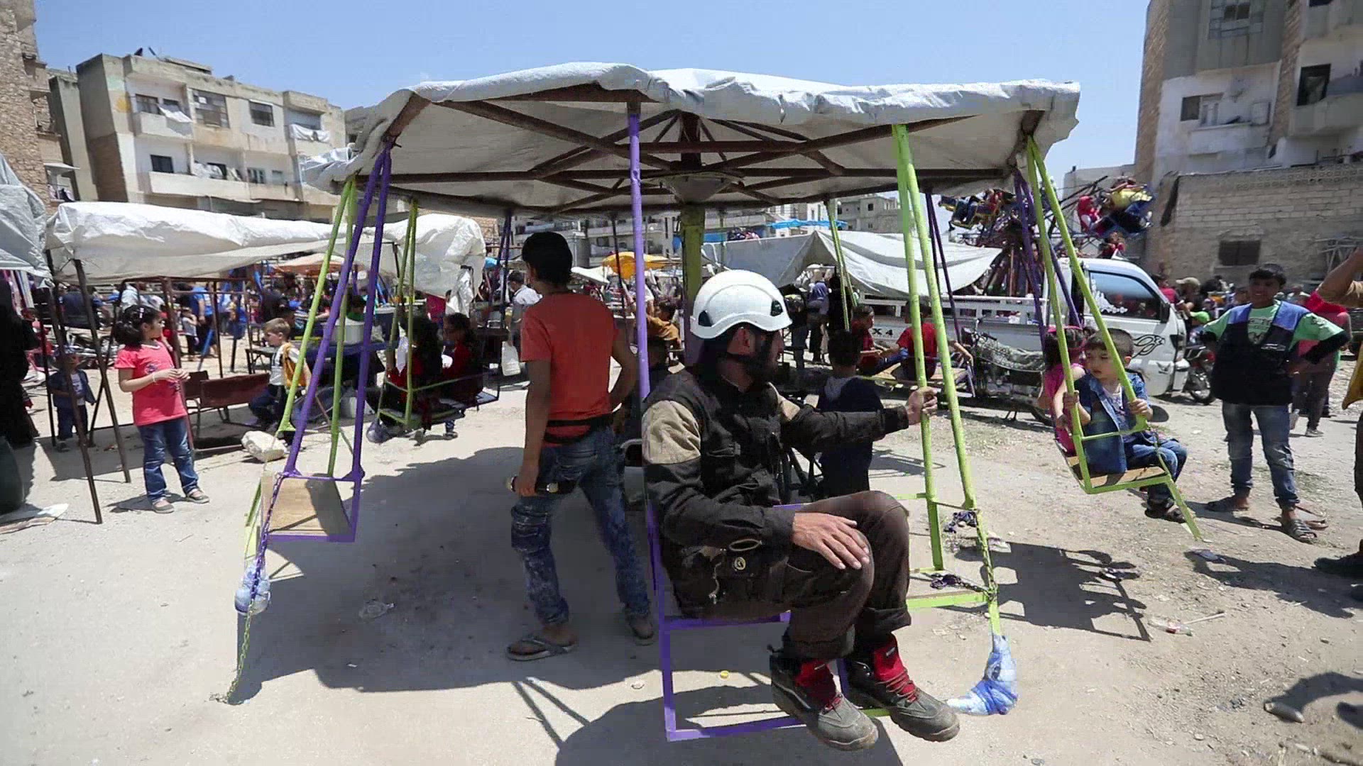 Air strikes kill dozens of civilians in northwest Syria Syrians rescue wounded people from the rubble and take them to a nearby field hospital following an airstrike on Zardana, in Syria's northwestern Idlib province. IMAGES AND SOUNDBITES