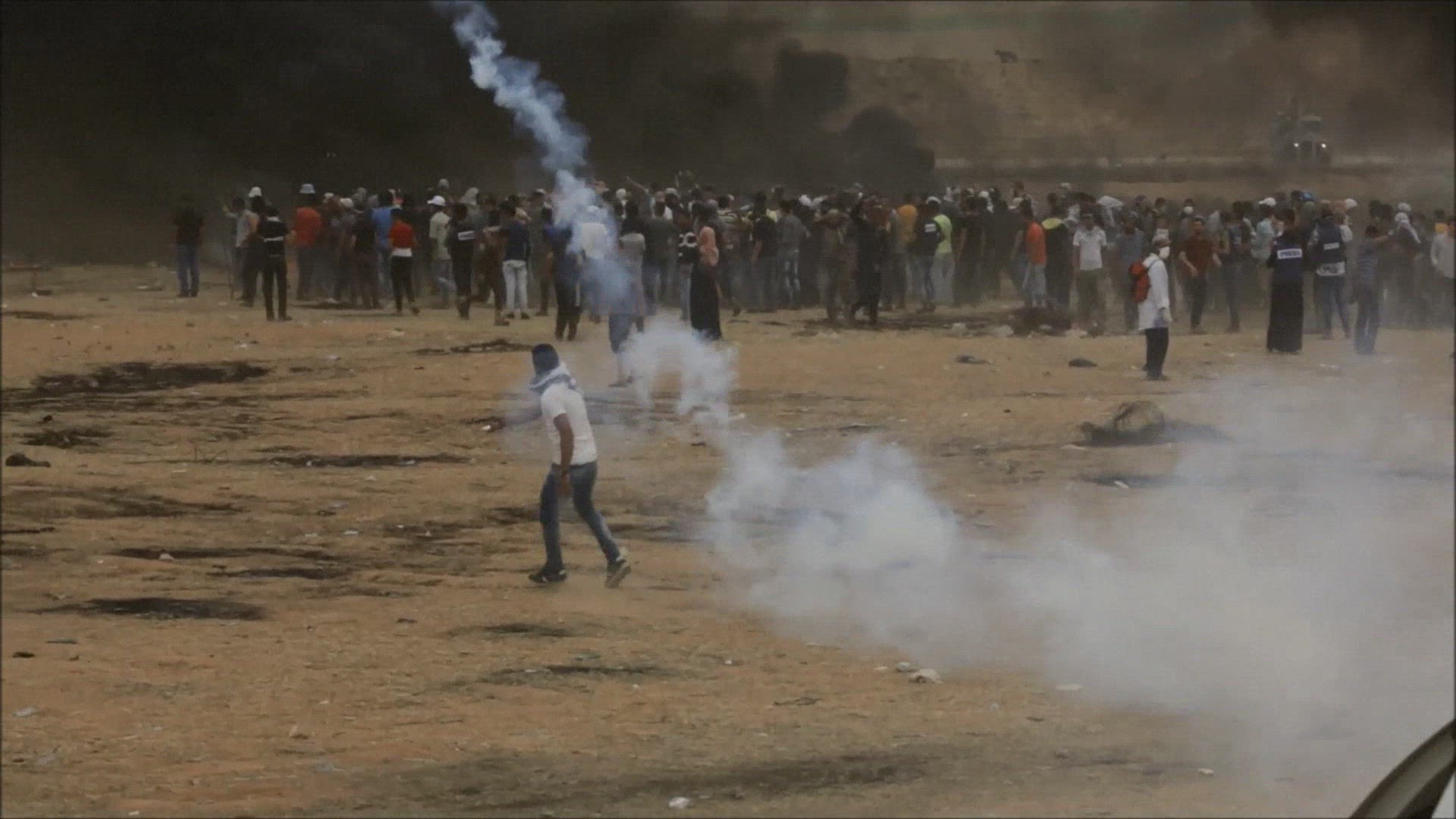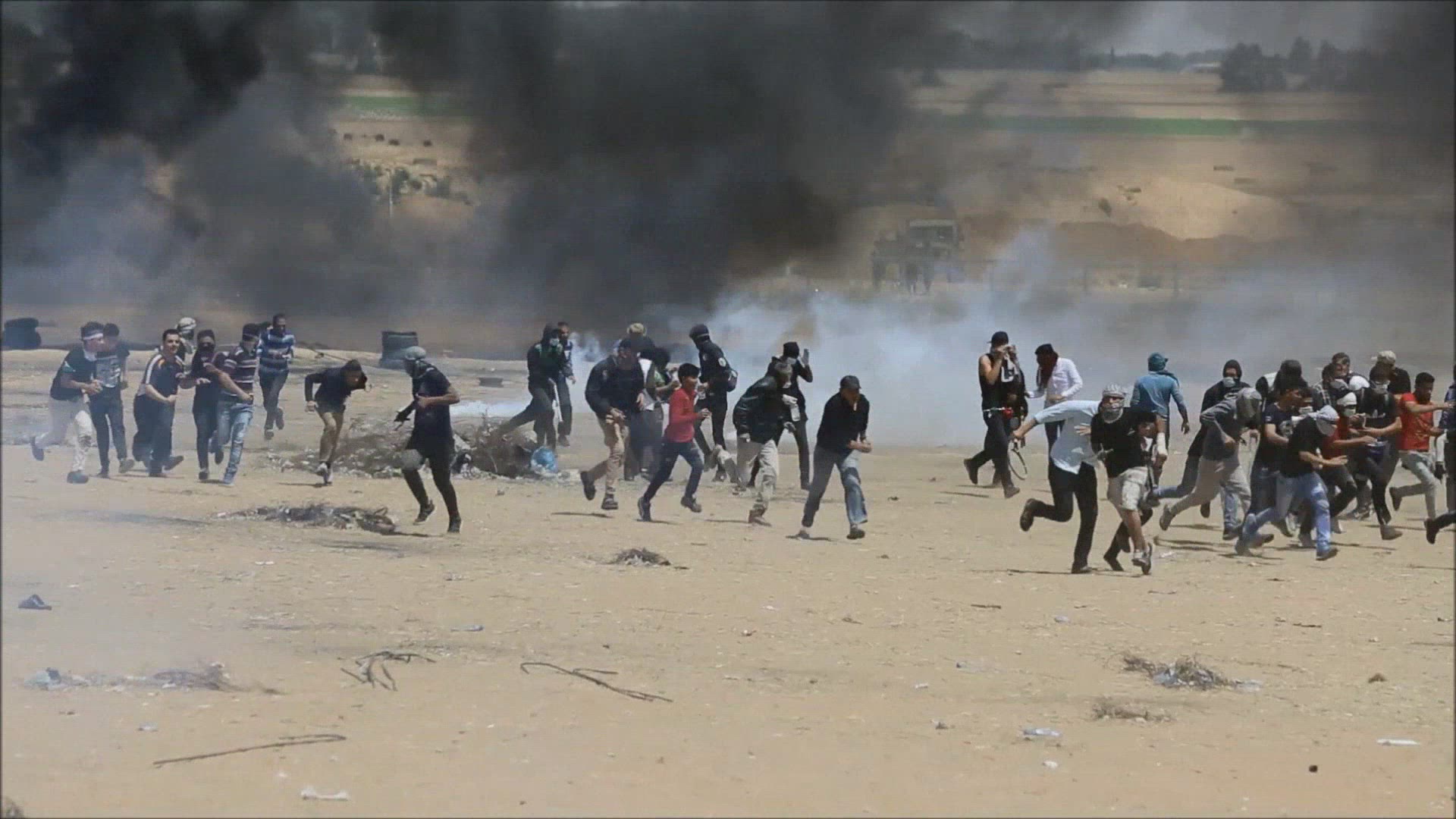 Gaza: clashes between Palestinians and Israeli forces Palestinians clash with Israeli forces along the border near Khan Yunis in the southern Gaza Strip, on demonstrations marking 70th anniversary of the 'Nakba', the exodus of thousands of Palestinians in 1948. IMAGES