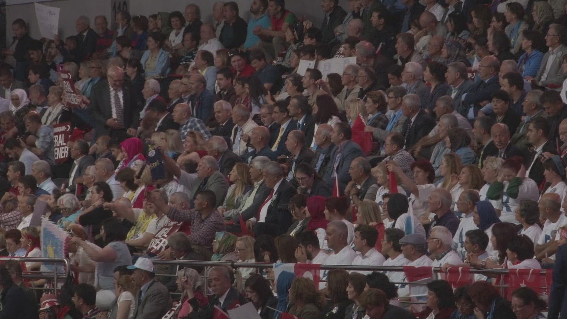 Turkish President Erdogan holds campaign rally in Ankara Turkish President Recep Tayyip Erdogan, who is facing stiff opposition for presidential and legislative polls on June 24, holds a massive meeting campaign in a stadium in Ankara with thousand of supporters. IMAGES AND SOUNDBITES