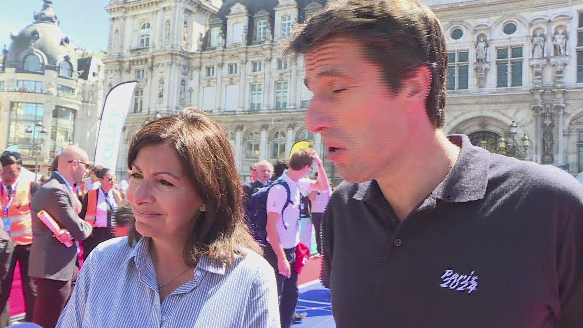 Future host of 2024 Games, Paris celebrates Olympic Day Tennis at the Hotel de ville, kayaking on the Seine...Paris goes all in for its celebration of Olympic Day as it gears up to host the 2024 Summer Games. France's politicians and athletes alike join the festivities to ramp up support for Paris 2024. IMAGES AND SOUNDBITES(COMPLETES VID1201598_EN)