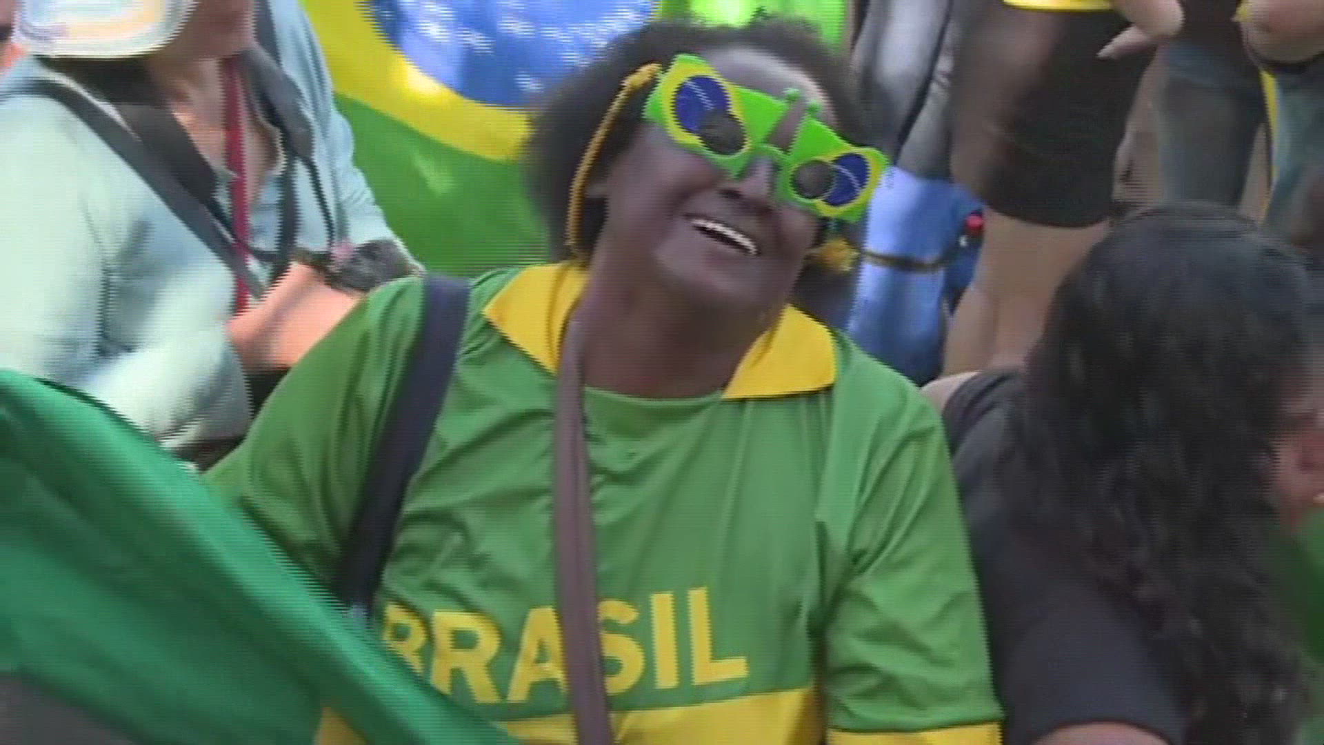 Brazil fans celebrate first goal, Mexico downbeat Brazil fans go wild as Neymar scores a goal against Mexico after a stale first half, while Mexico fans worry about their prospects in reaching the quarter-finals. IMAGES++ REFILING WITH QUARTER-FINALS INSTEAD OF SEMI-FINALS IN LEAD ++