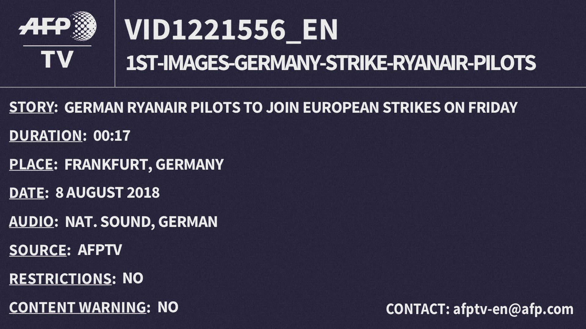 German Ryanair pilots to join European strikes on Friday Germany's Ryanair pilots will join an unprecedented wave of strikes against the no-frills carrier across Europe on Friday, escalating a row over pay and conditions at the height of the summer season. SOUNDBITE.