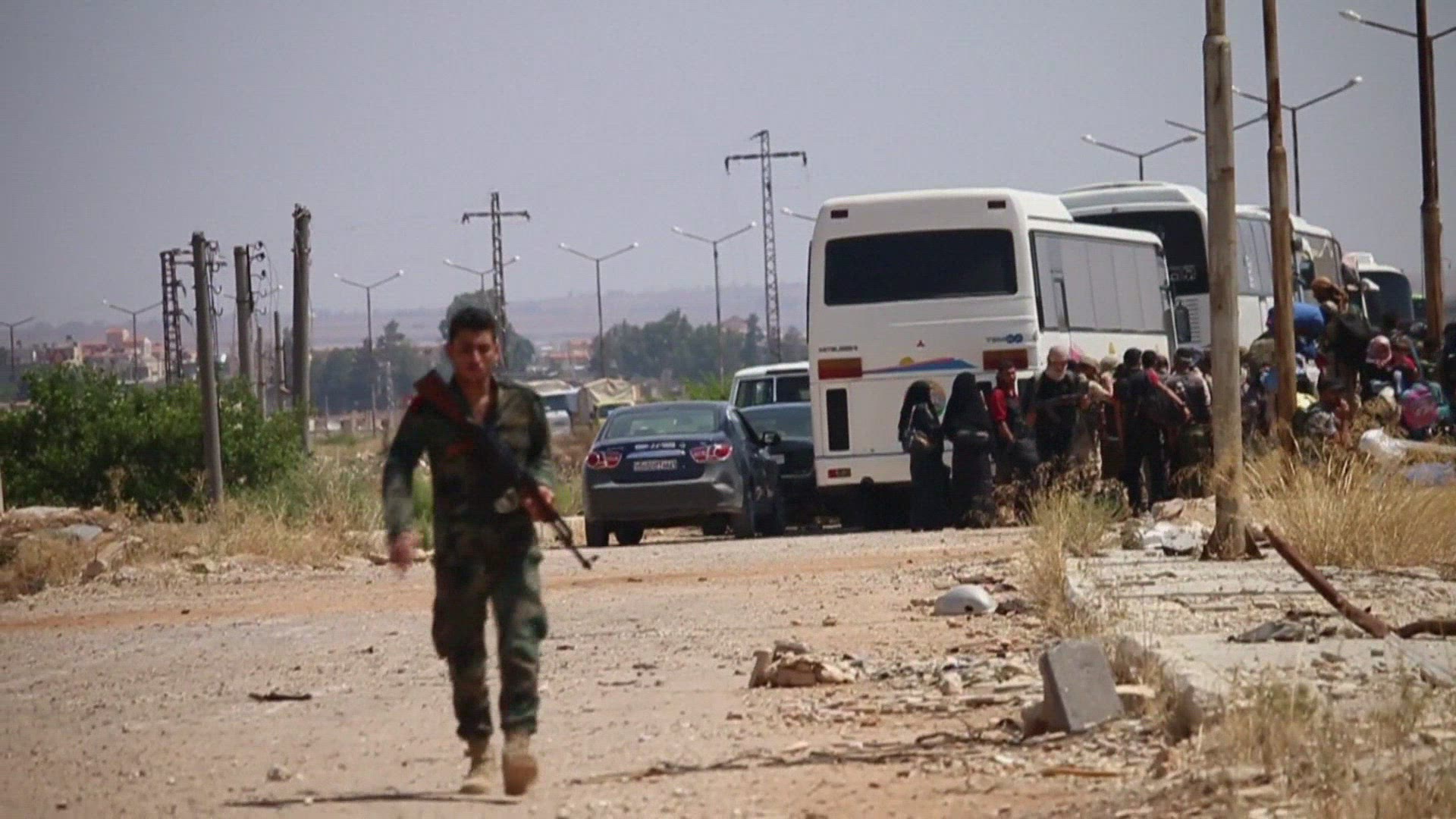 Strikes on Syria's Daraa province, seen from the Golan Heights Images filmed from the Israeli-annexed Golan Heights shows smoke billowing above buildings across the border in Syria during air strikes in the southwestern province of Daraa. IMAGES