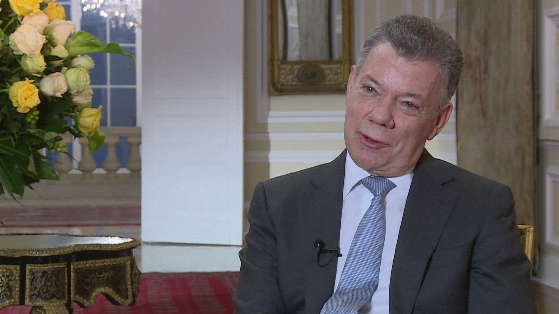 Santos expects Maduro regime in Venezuela to fall soon Colombian President Juan Manuel Santos says he expects the fall of Nicolás Maduro's regime in Venezuela shortly, adding "it is very difficult to put additional pressure to change the regime peacefully as soon as possible." IMAGES AND SOUNDBITES