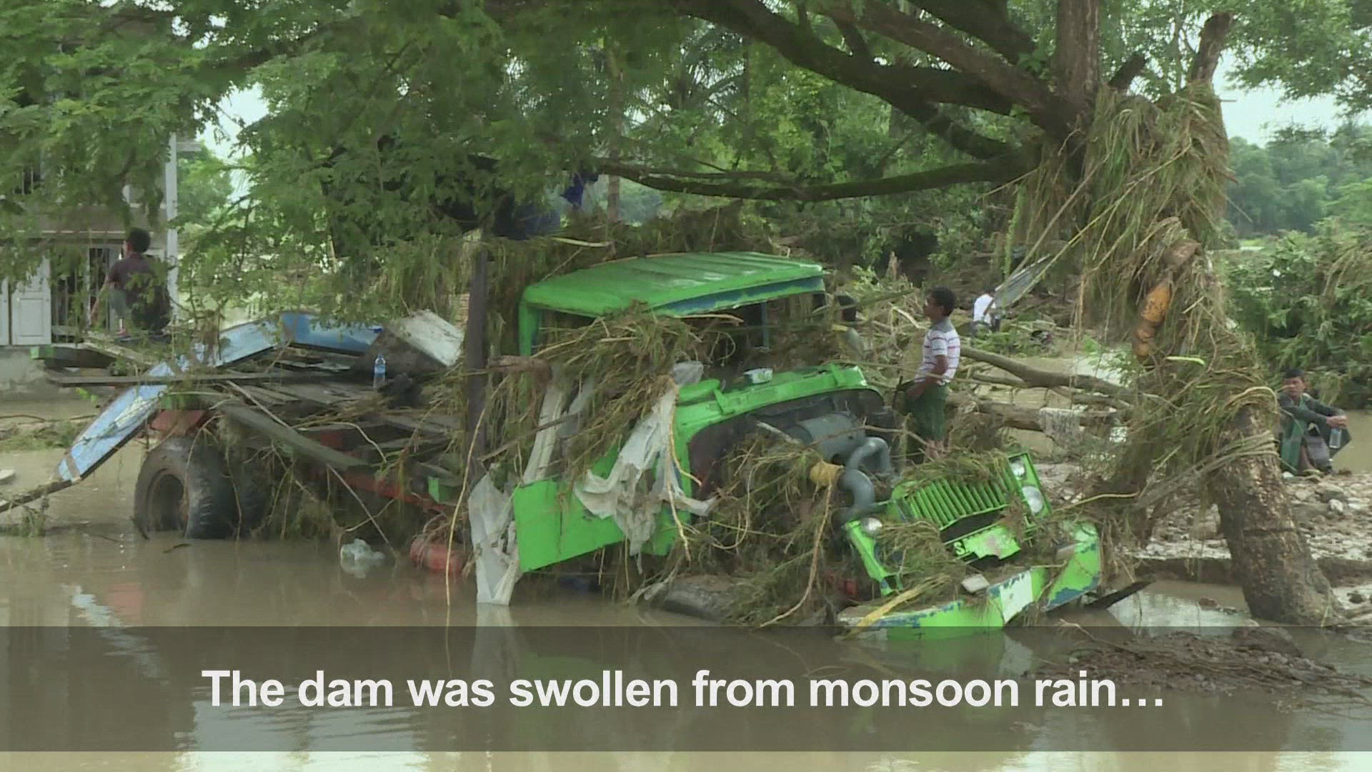 Myanmar dam overflow displaces thousands A major effort was under way to reach thousands of people trapped in their homes after a dam swollen by monsoon rain overflows in central Myanmar. IMAGES AND SOUNDBITES