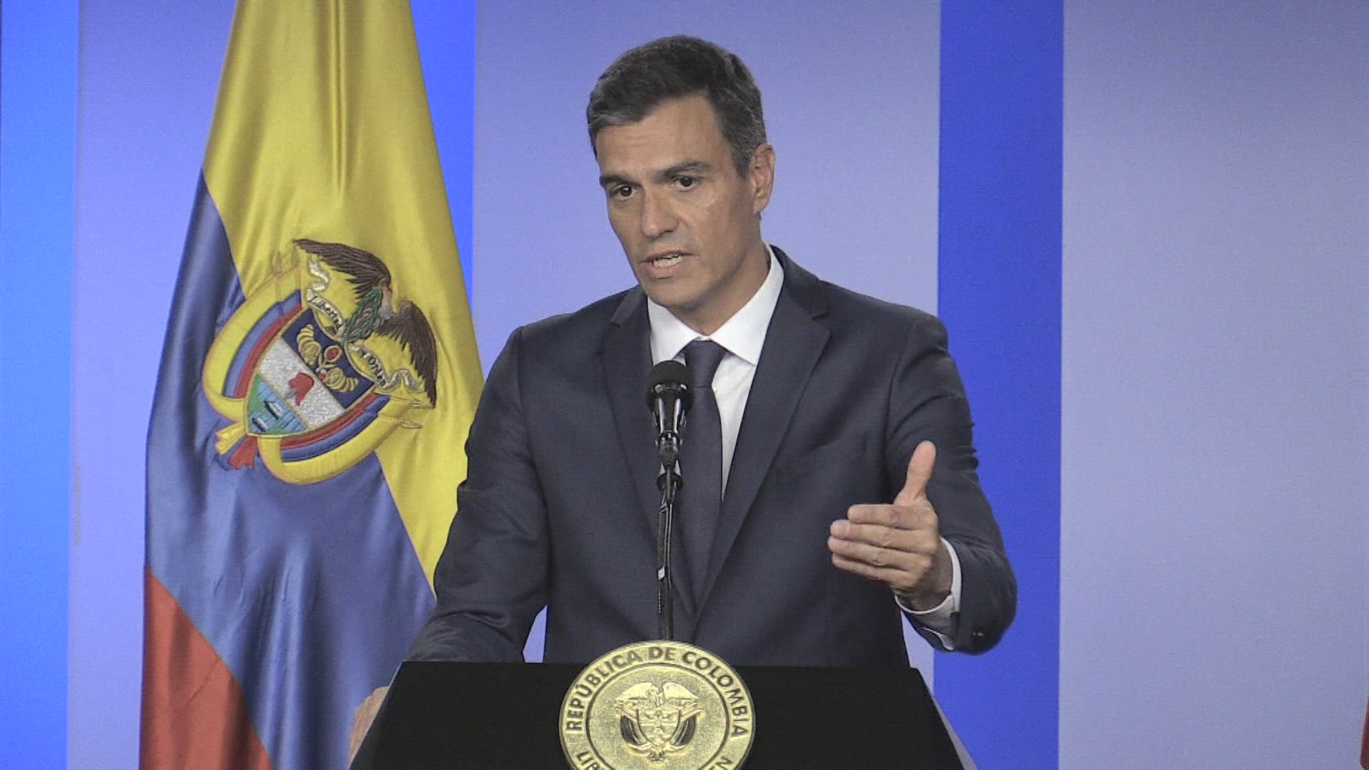 Spain PM says Venezuela is not a democratic country Spanish Prime Minister Pedro Sanchez says that Venezuela is not a democratic country, as he addresses the Venezuelan crisis during his visit to Colombia. SOUNDBITES