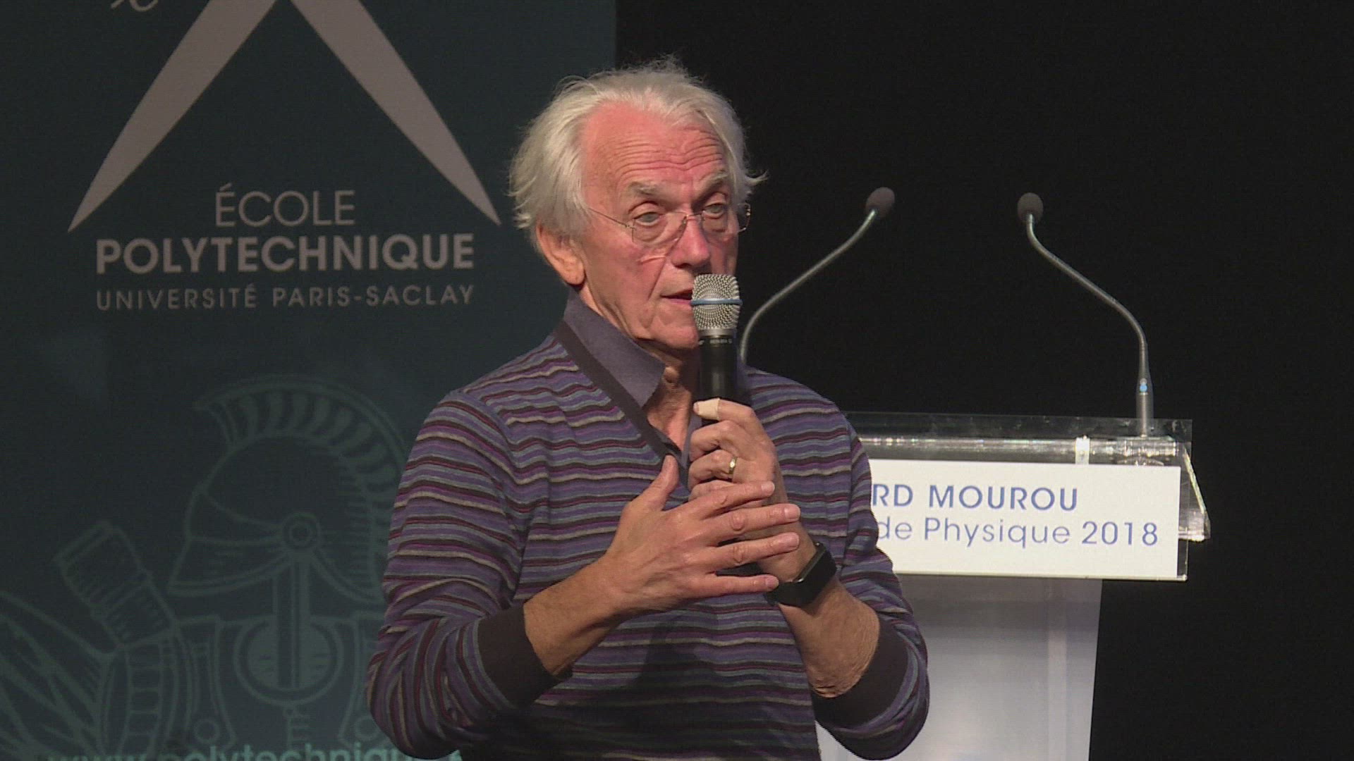 France's Gerard Mourou is "stunned" to win Nobel Physics Prize France's Gerard Mourou says he was "stunned" to learn that he had been awarded the Nobel Prize in Physics, jointly with the American Arthur Ashkin and the Canadian Donna Strickland. He reacts from the Polytechnic School of Palaiseau, near Paris, where his laboratory is located. The trio of physicists was rewarded for its ground-breaking discoveries harnessing the power of lasers. SOUNDBITE(COMPLETES VID1243754_EN, VID1243813_EN)