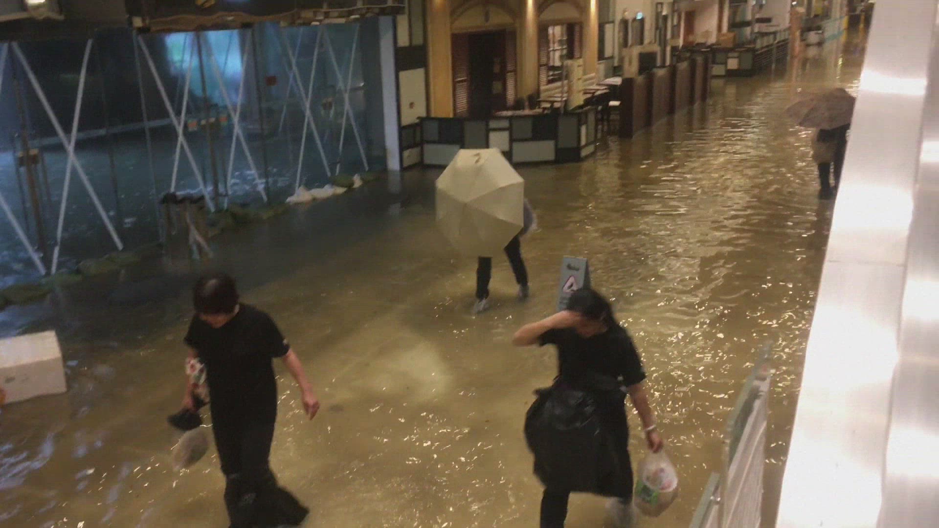 Hong Kong prepares for Super Typhoon Mangkhut Residents prepare for the arrival of Super Typhoon Mangkhut in the fishing village of Tai O in Hong Kong.