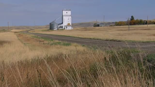 > The wind blows the grass on the prairie.