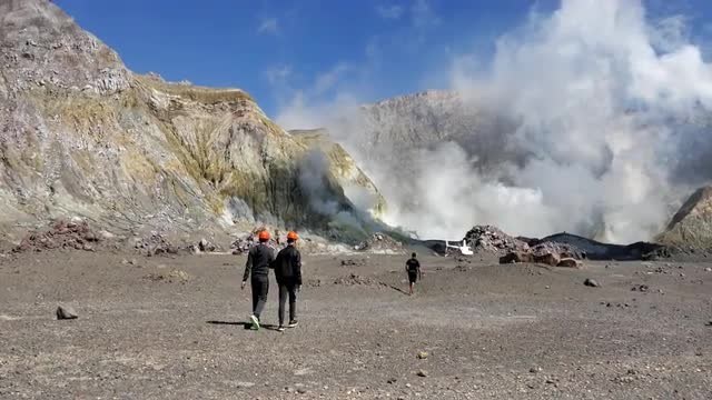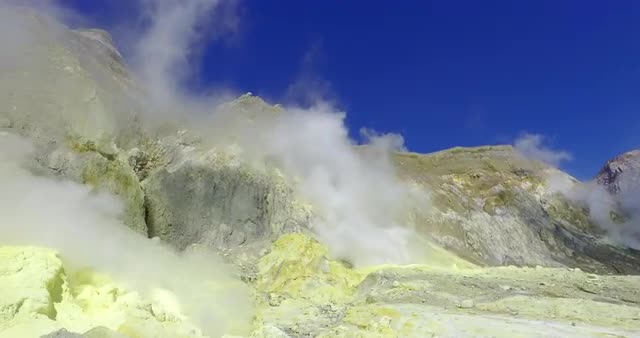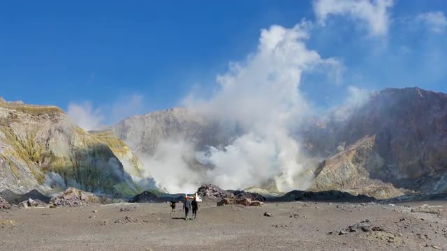 Dark clouds rise from a volcanic eruption in a geothermal area of Yellowstone National Park.