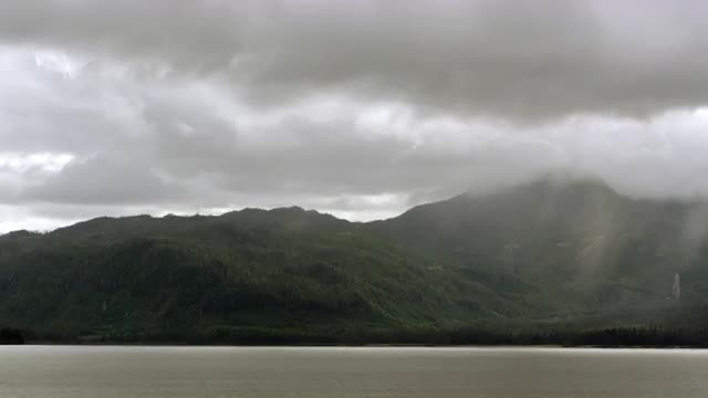 745143 - View from a cruise ship moving through the water parallel with a mountain