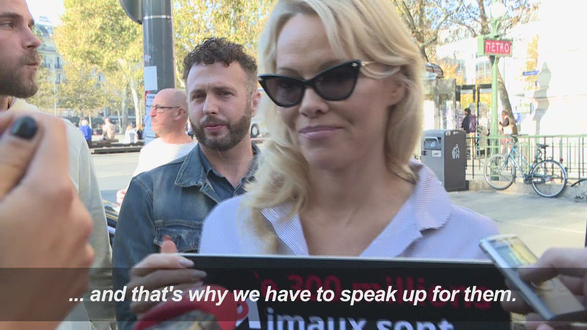 Pamela Anderson lends voice to Paris animal rights protest Animal rights activists promoting petition to prohibit cage-raising animals at the European level are joined by US actress and model Pamela Anderson for a protest in Paris. IMAGES AND SOUNDBITES