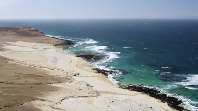 > A pan across palm trees and a beautiful bay in Hawaii.