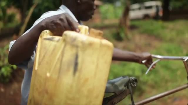 A man is repairing a part on the handlebar of a bicycle.