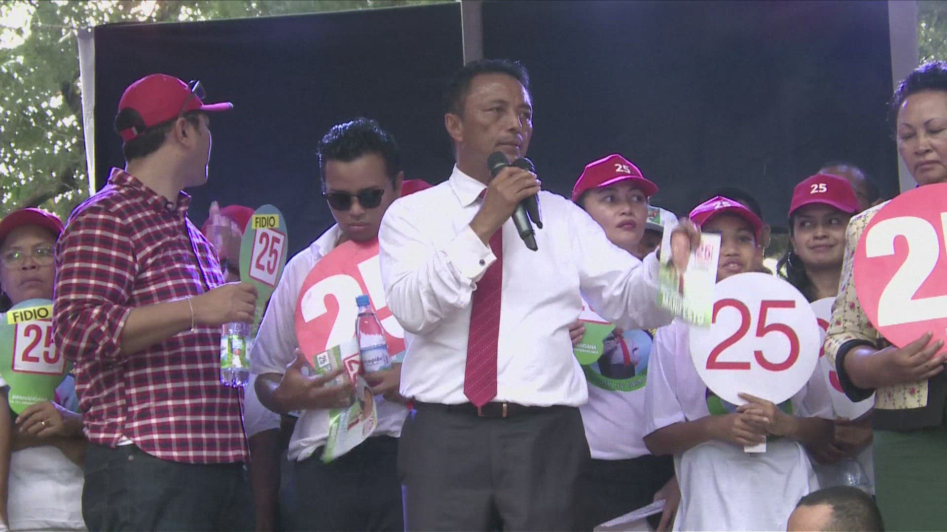 Madagascar elections: supporters of two candidates cross paths Supporters of Madagascar's presidential candidates Marc Ravalomanana and Andry Rajoelina cross paths in downtown Antananarivo ahead of the first round of the presidential elections on November 7. IMAGES