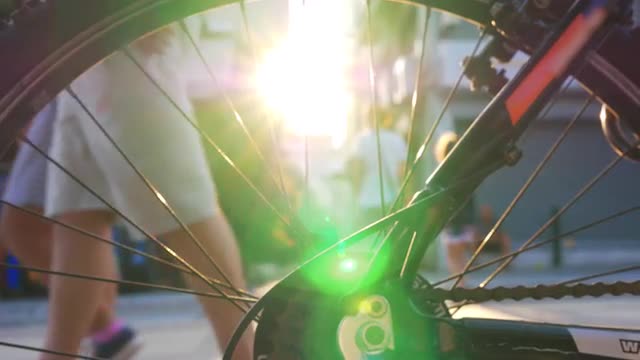 > Feet pedal a bicycle.