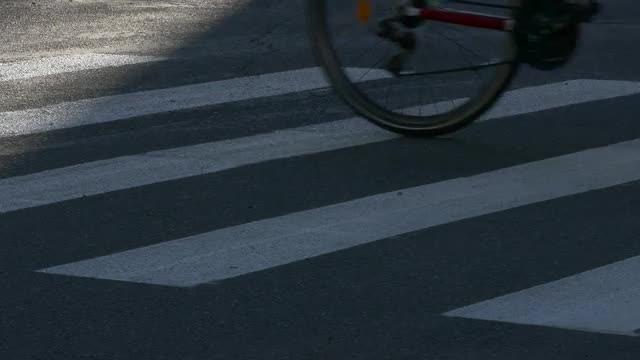 181204 - A bicycle is being ridden down a street.