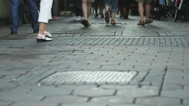 88163 - Shot of people's feet while walking on a sidewalk at Amsterdam