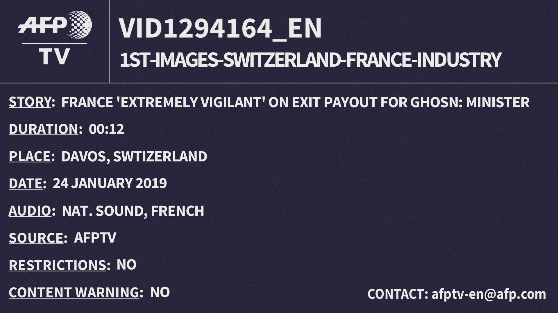 France 'extremely vigilant' on exit payout for Ghosn: minister French Finance Minister Bruno Le Maire says Paris will be "extremely vigilant" about the severance pay for Carlos Ghosn after the jailed auto tycoon resigned as boss of Renault. SOUNDBITE