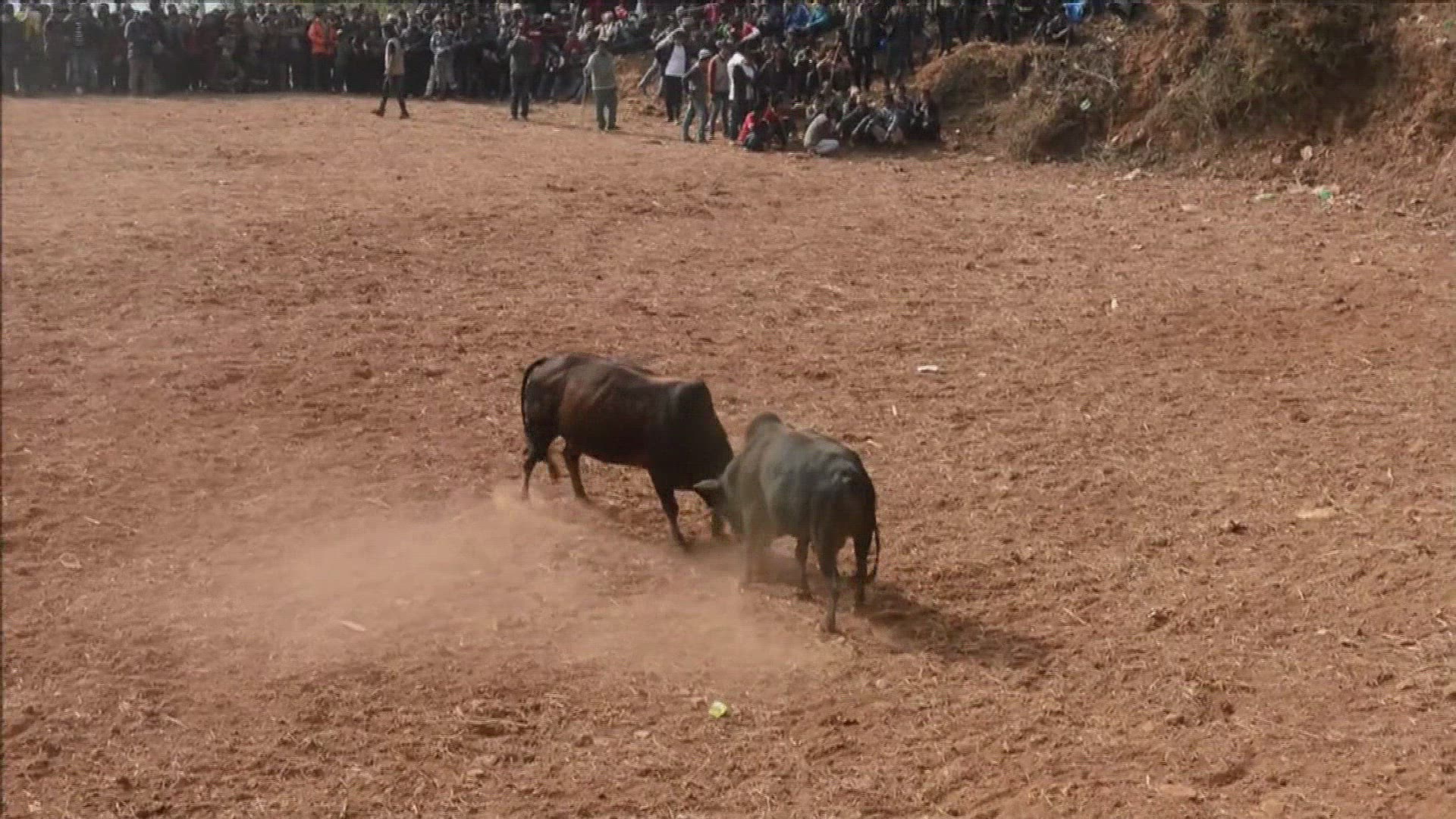 Nepalis enjoy bullfighting festival Spectators in Taruka village gathered at an open ground in the Himalayan foothills to watch a bullfighting during the Maghesangranti Festival, which commemorates the start of the holy month of Magh, ushering into the warmer weather and longer days. IMAGES