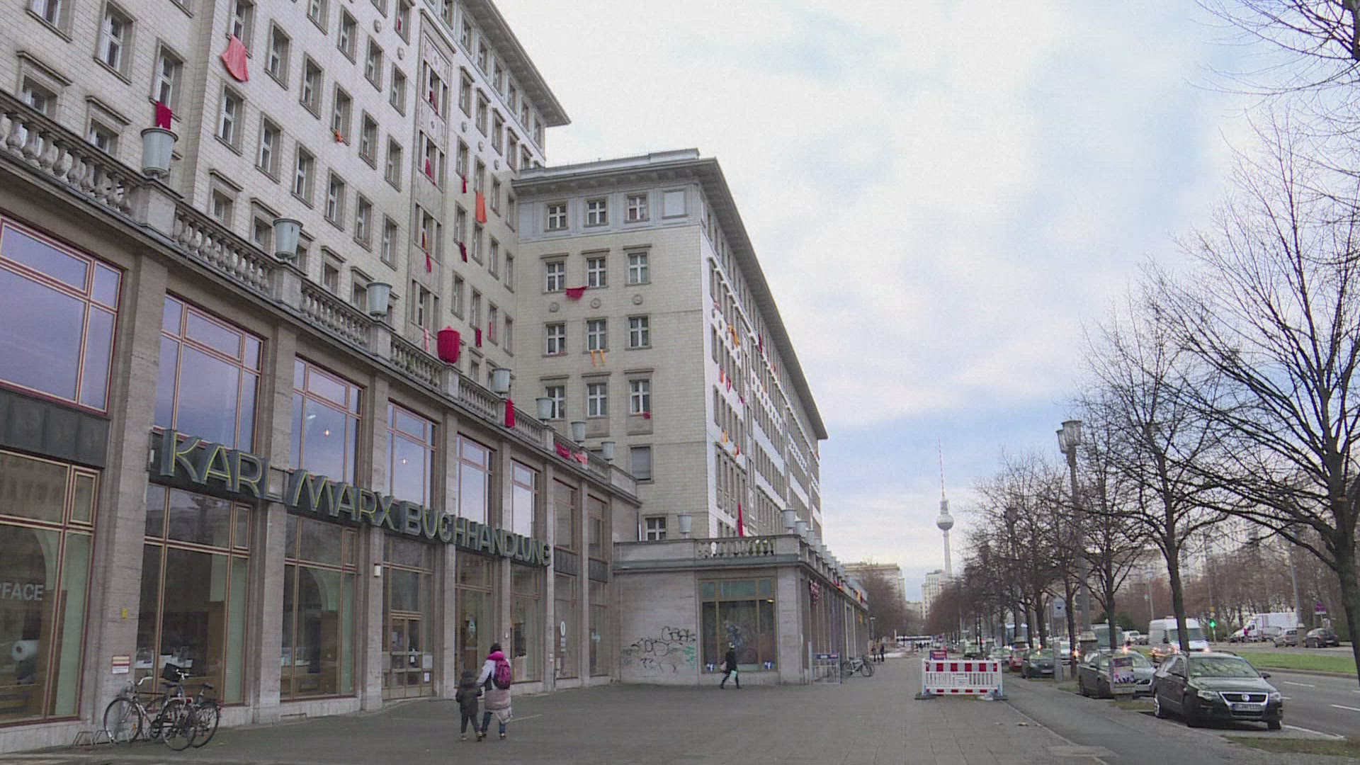 Berliners see red over Karl Marx Allee sale Karl Marx Allee was the former East German government's showpiece -- a wide boulevard lined with Stalinist-style buildings housing the comrades. Today, the avenue is a front line in the battle against rampant gentrification in Berlin. A Natural Sound Version of an AFPTV report.