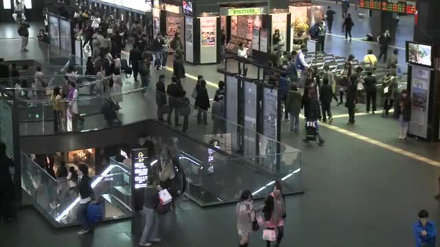 > Commuters and turnstiles at the JR Station, Kyoto, Japan.