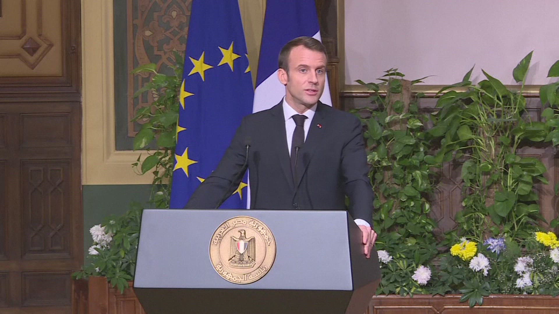 Macron presses Egypt's Sisi on respect for 'freedoms' French president Emmanuel Macron gives a joint press conference with his Egyptian counterpart Abdel Fattah al-Sisi during his visit to Cairo. Macron, on a three-day visit to Egypt, had vowed to raise human rights concerns with the former army chief while also seeking to boost ties between the two countries. IMAGES AND SOUNDBITES REFILE WITH ADDITIONNAL SOUNDBITE