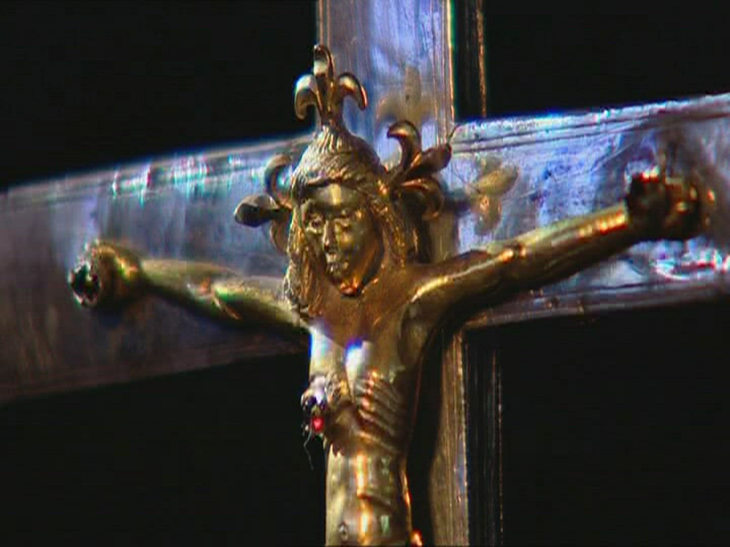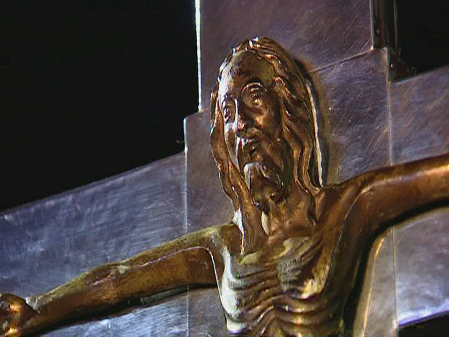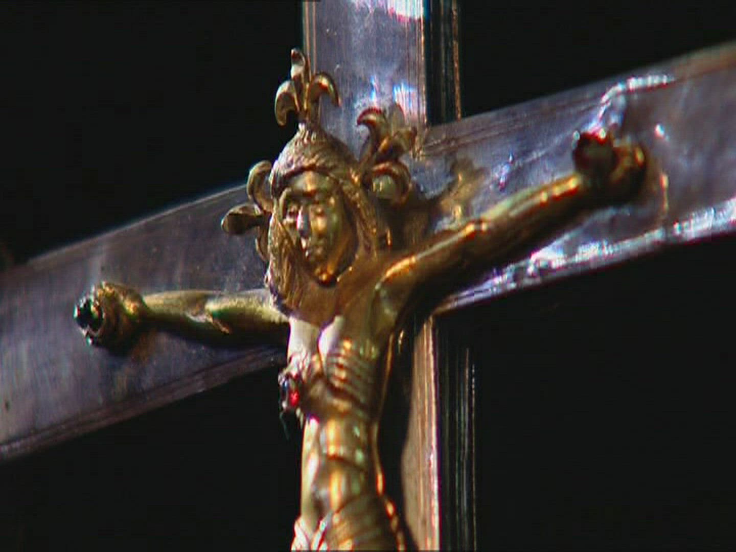 A vertical pan of a painting of Mary and Christ, located in Huilquilemu, a colonial estate that is n