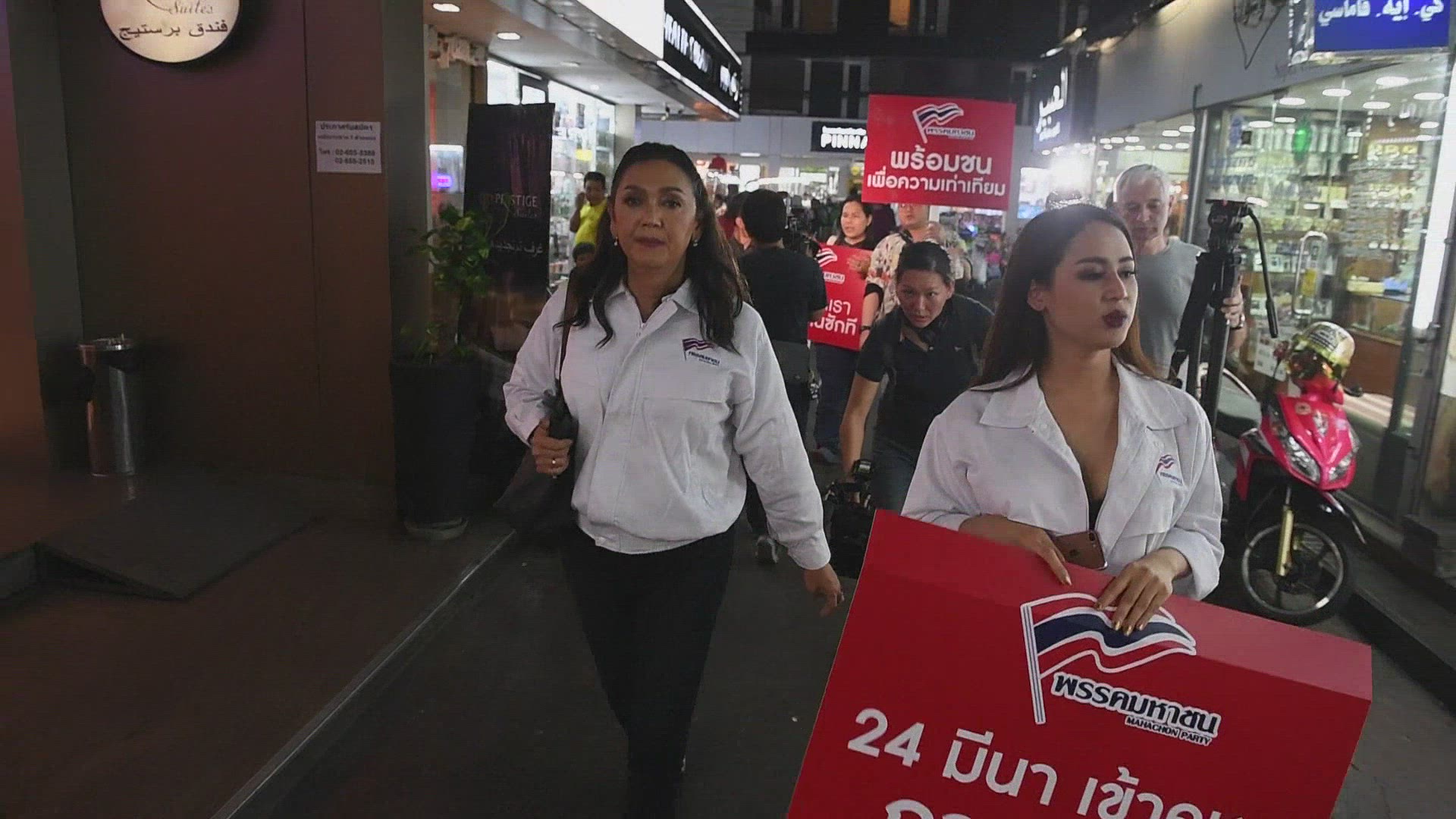 First transgender candidate campaigns for Thai general election Palinee Ngaarmpring, one of three candidates from Mahachon Party running for prime minister and first transgender candidate for the upcoming general election, campaigns in Bangkok's Nana district. IMAGES